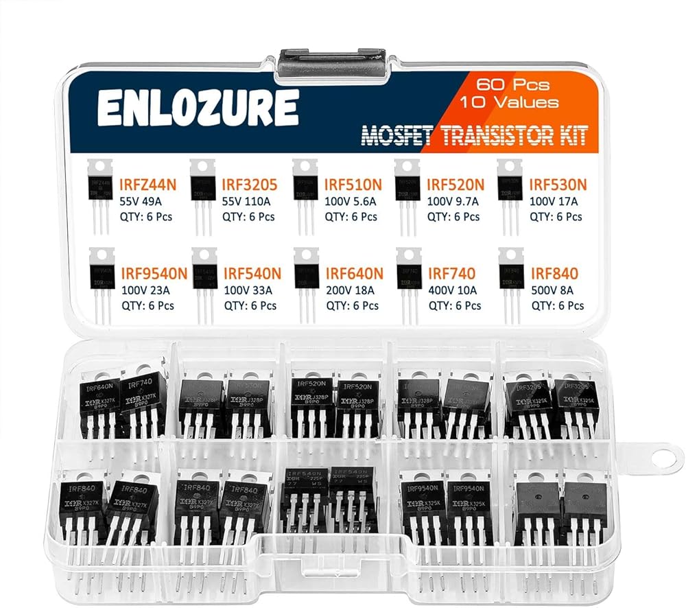 • ENLOZURE 10 قيم 60 قطعة مجموعة متنوعة من ترانزستور MOSFET