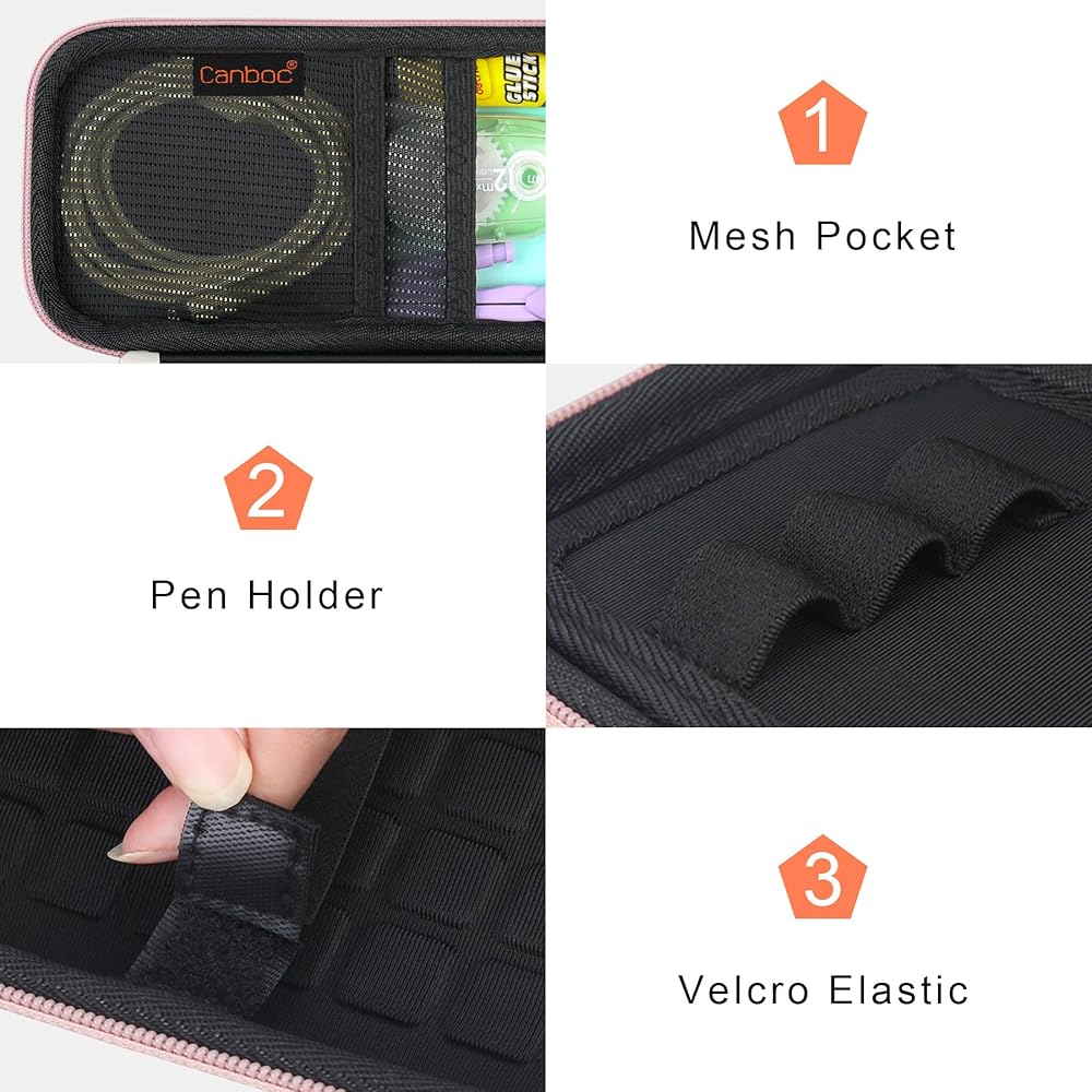 • 【تصميم بسيط وعملي】 توفر الحافظة الواقية لآلة حاسبة الرسوم البيانية مساحة تخزين كبيرة. جيبان شبكيان وستة حاملات أقلام رصاص في الجزء العلوي من الحافظة، دليل حسابي وكابل وقلم رصاص ميكانيكي ومسطرة مثلثة ومنقلة وبطاريات إضافية وأشياء صغيرة أخرى. يحتوي الشريط المطاطي المستخدم لإصلاح الآلة الحاسبة على شريط فيلكرو مخصص لضبط الملاءمة. يمكنك ضبط طول الشريط المطاطي وفقًا لحجم الآلة الحاسبة.