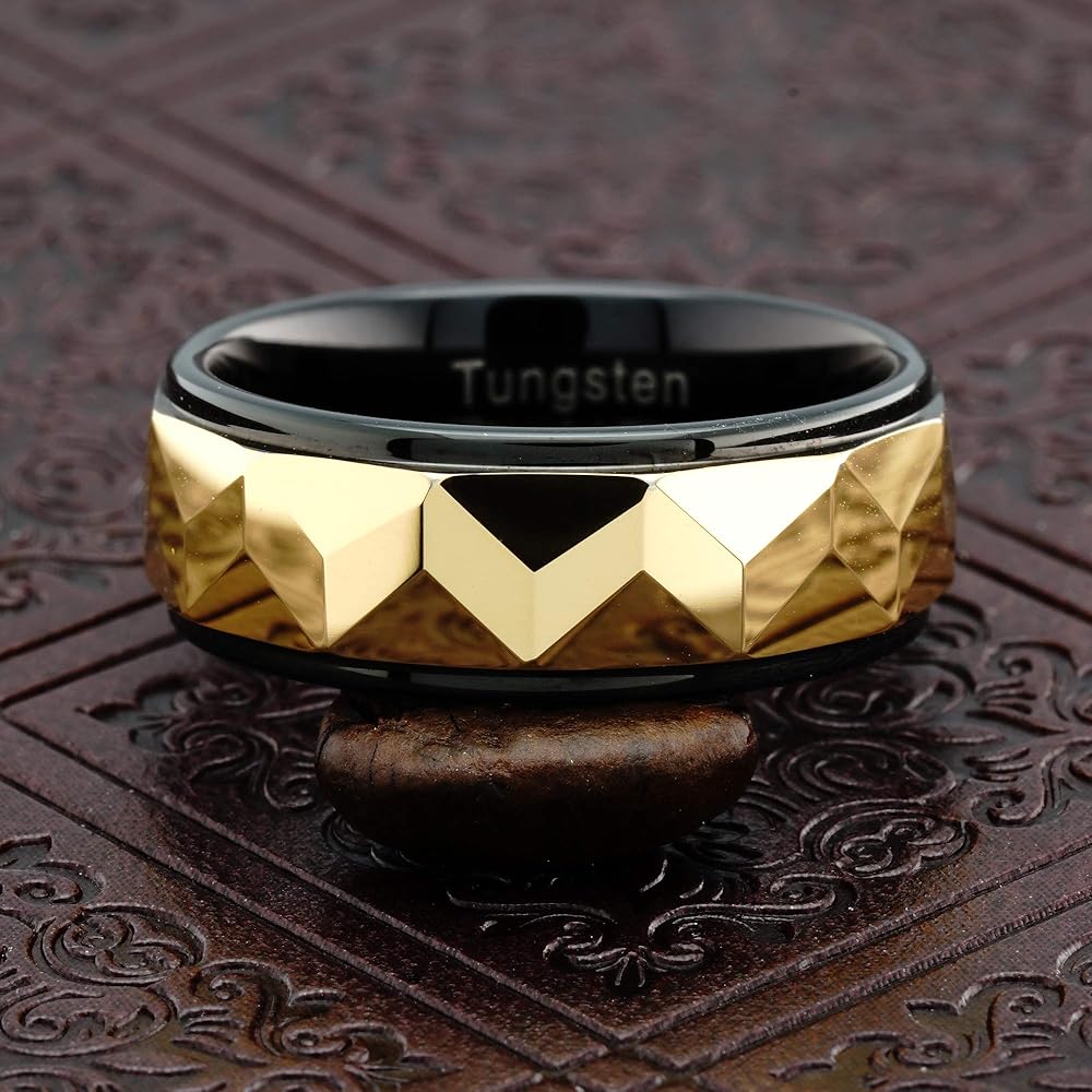 • CASUAL & MODERN: Tungsten band with Faceted Cut and Black Gold two tone for a bride or groom offers affordable luxury without appearing fake