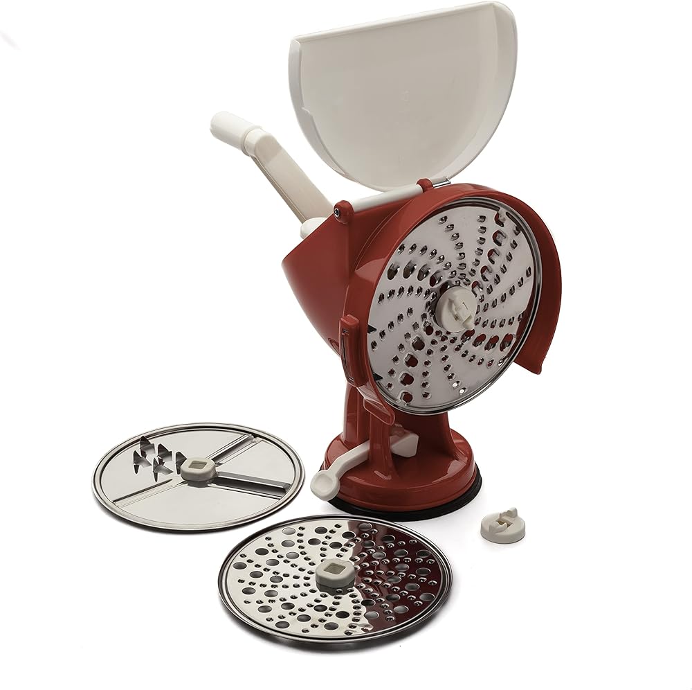 محضرة الطعام اليدوية من كينجز كاونتي تولز | 3 أقراص قطع من الفولاذ المقاوم للصدأ | قاعدة أكواب شفط للاستقرار | لا حاجة للسكاكين | أداة مطبخ إيطالية الصنع