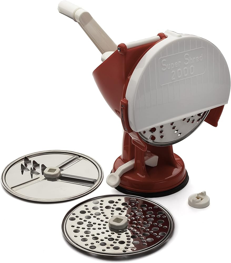 معالج الطعام يدوي الصنع لدينا هو خيار إعداد الطعام أكثر هدوءا من الإصدار المحرك. يمكن سحبها بسهولة من الخزانة وتنظيفها. ببساطة أدخل أحد أقراص القطع الثلاثة، ضع الطعام في الخزان وفي الخلف، وابدأ تدوير المقبض. في أي وقت من الأوقات. الأقراص مصنوعة من الفولاذ المقاوم للصدأ #18/C، والجسم والذراع مصنوعان من بوليمرات آمنة غذائياً والتي تتفكك بسرعة من أجل تنظيف شامل وسهل. قاعدة التثبيت بالشفط تُغلق بأمان في مكانها بقفل رافعة. تحتوي الأقراص الثلاثة على خمسة خيارات للتمزيق. تحتوي الأقراص على صامولة قفل بسيطة في الوسط وسهلة التغيير. استخدم قرص ذو جانب واحد وفائق الدقة للجبن الصلب (مثل البارمزان)، والمكسرات، والتوابل والشيكولاتة. القرص المتوسط ذو الوجهين يتمزق الخضروات مثل الجزر والكوتشيني والبصل ويقلبه فقط للحصول على المزيد من الخشونة من الجبن الناعم. القرص الثالث أيضًا ذو وجهين، وهو رائع للجزر أو قطع الأشياء مثل عصير البطاطس. غير متأكد من القرص الذي يجب استخدامه؟ يأتي معالج الطعام الإيطالي يدوي مع اقتراحات تفصيلية. هذا منتج مطبخ مصنوع في إيطاليا ليدوم لسنوات. امنح هذا المطبخ القديم المدهش تجربه، ستحبينه!