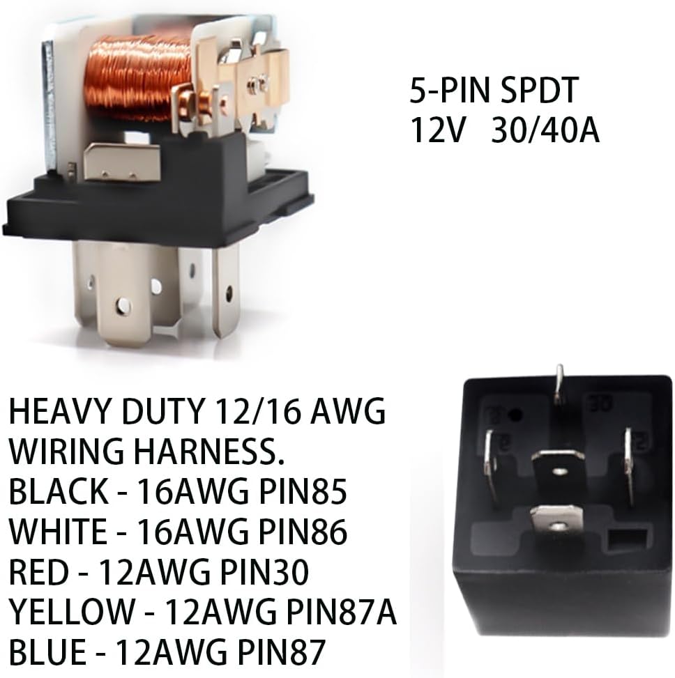 التوصيل والتشغيل: متوافق مع مرحل السيارات الأكثر عالمية بجهد 12 فولت و5 دبابيس مع قدرة تبديل 40 أمبير. من السهل معالجة الطلب الخاص بك. يرجى التحقق من أبعاد واتجاه الأعمدة بعناية قبل الطلب لتجنب شراء المنتج غير الصحيح.