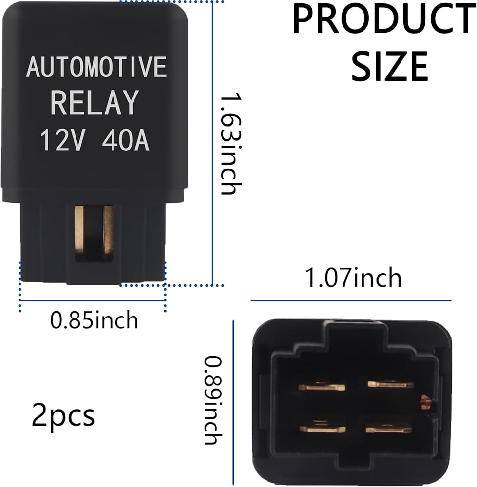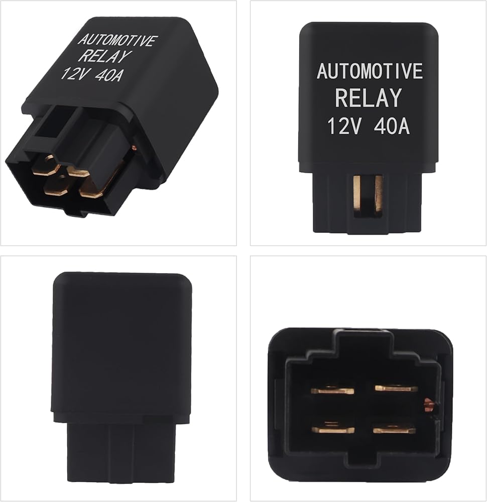 • ⭐ Relay Specifications:The voltage of this radiator fan relay is DC12V, the current is 30/40A, the size is 1.63x1.07x0.89 inch, and it has 4 pins. Universal specifications make it widely used in the air conditioning systems of various cars, trucks, SUVs, RVs, vans, and off-road vehicles. Please carefully confirm the interface type of the product before placing an order.