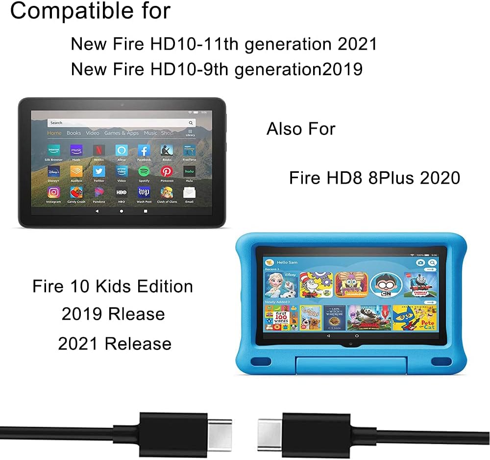 محول شاحن USB C بطول 6.5 قدم متوافق مع New Fire HD 10 (إصدار 9th 11th 13th جيل 2019 2021 2023) Fire 10 Plus، Fire 10 Kids Edition، Fire 10 Kids Pro