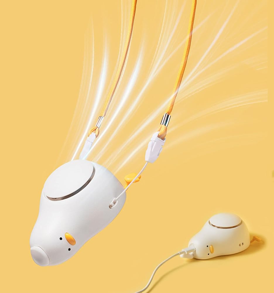 Portable Hanging Neck Desktop Fan:Cute USB Powered Fan,Made of eco-friendly ABS material,BPA free,The duck's feet can stand up as a support ,Place in table,desk,bedroom,office,Bring you fresh cool wind.it is a must travel accessory gifts for teens,kids,girls and women. Charging for 2-3 hours, working 1-4 hours, really comvenient for taking it when summer travel or outdoor sports.