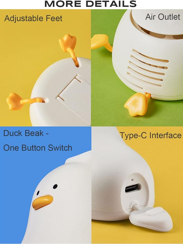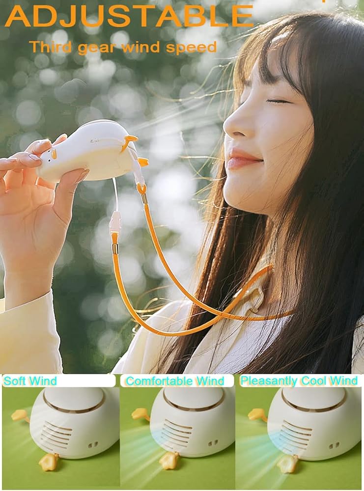 3 Adjustable Speeds:Powerful Personal Fan With three adjustable wind speeds, press the cute duckbill button to adjust different wind speeds,for low-speed 3500r/m, medium speed 4500r/m, high-speed 7500r/m, the wind is strong enough to cool you down quickly.Portable and noiseless.