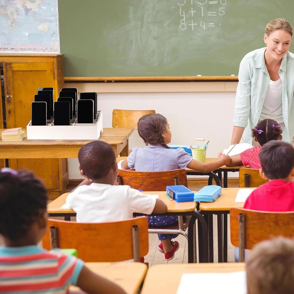 خامة عالية الجودة: حامل الهاتف في الفصل الدراسي مصنوع من خشب عالي الجودة، ثابت ومتين، قوي وعملي. يمكنه حمل ما يصل إلى 33 هاتفًا محمولاً لتلبية احتياجاتك.