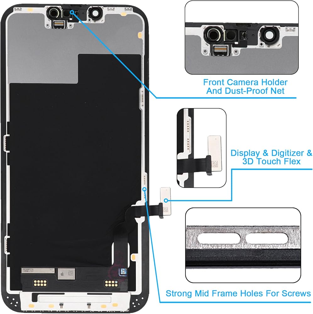 مجموعة أدوات إصلاح كاملة لشاشة iPhone 13 مقاس 6.1 بوصة ثلاثية الأبعاد تعمل باللمس LCD مجموعة عرض رقمية مع لاصق مقاوم للماء، زجاج مقسى 10D، أدوات (A2633، A2482، A263، A2634)
