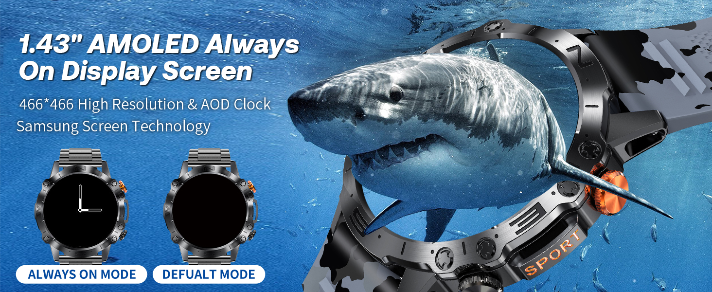 ساعة PODOEIL العسكرية الذكية للرجال مع مكالمة بلوتوث، شاشة عرض AMOLED مقاس 1.43 بوصة تعمل دائمًا لنظام التشغيل iOS Samsung Android، أكثر من 100 وضع رياضي لتتبع الأنشطة مع مراقبة الصحة ومراقبة النوم