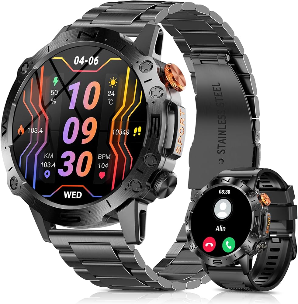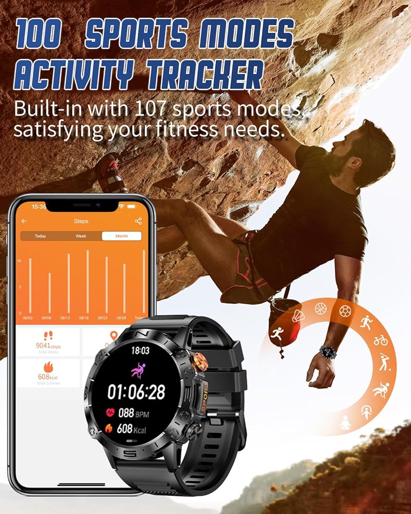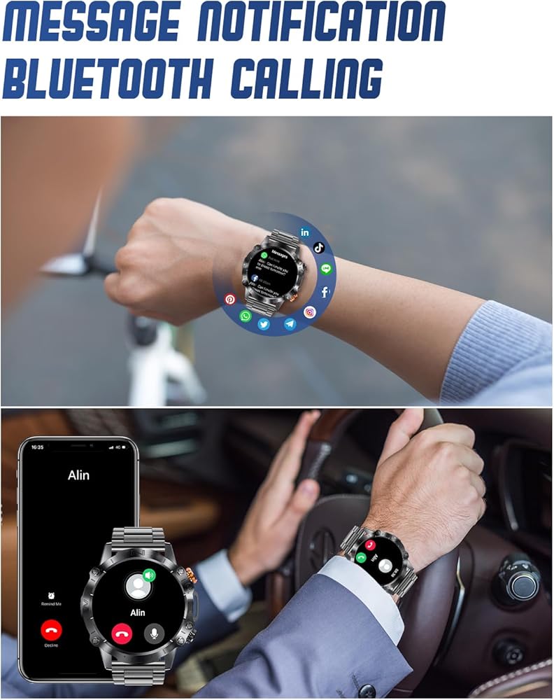 ⌚ 【إشعارات مكالمات ورسائل البلوتوث 】 ما عليك سوى الاتصال عبر التطبيق لإجراء مكالمات بلوتوث والاستماع إلى الموسيقى من هذه الساعة الذكية. قم بالرد على المكالمات واحصل على تنبيهات الاهتزاز للرسائل وتحديثات التطبيقات - كل ذلك من معصمك. تمتع بالحرية من خلال التحقق المستمر من هاتفك أثناء القيادة أو ممارسة الرياضة أو القيام بالأنشطة التي تجعل حمل هاتفك أمرًا صعبًا. من خلال مركزية المكالمات والإشعارات، تضمن لك هذه الساعة الذكية التكتيكية البقاء على اطلاع مع تقليل عوامل التشتيت - حتى تتمكن من التركيز بشكل كامل على ما تفعله.