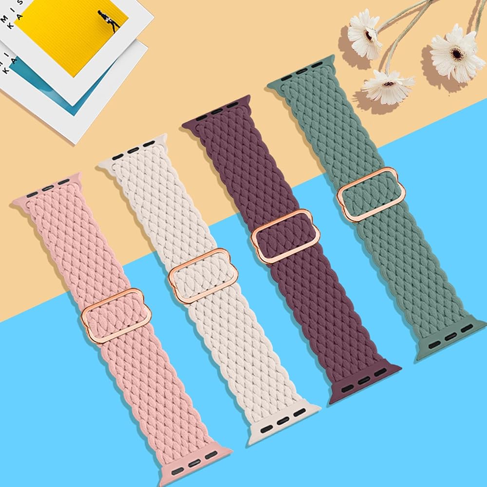 ألوان متعددة وحجم متاح: يمكن تعديل سوار ساعة Apple المزود بإبزيم مبتكر رفيع للغاية من الفولاذ المقاوم للصدأ بسهولة إلى الحجم المثالي للمعصم من 5 بوصات إلى 9.5 بوصات (127 ملم - 241 ملم) بدون أي أداة، مقاس واحد يناسب الجميع تقريبًا المعصمين. 4 قطع من حلقات ساعة أبل المنفردة في عبوة واحدة، ألوان أكثر تخصيصًا لتختار منها لتناسب جميع ملابسك: الوردي الفاقع، الأرجواني، الأزرق المخضر، الأصفر، الأخضر، ضوء النجوم، الأزرق، الأحمر، الأسود، إلخ.