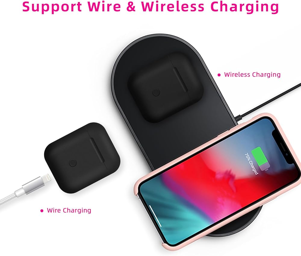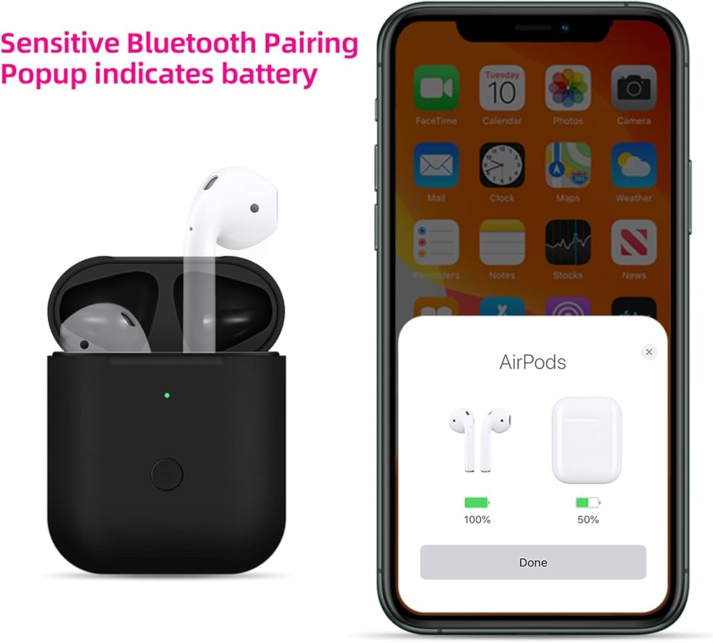 سلكي ولاسلكي: توفر علبة شاحن سماعات الأذن هذه خيارات الشحن اللاسلكي والكابل. يرجى ملاحظة أن الكابل غير متضمن.