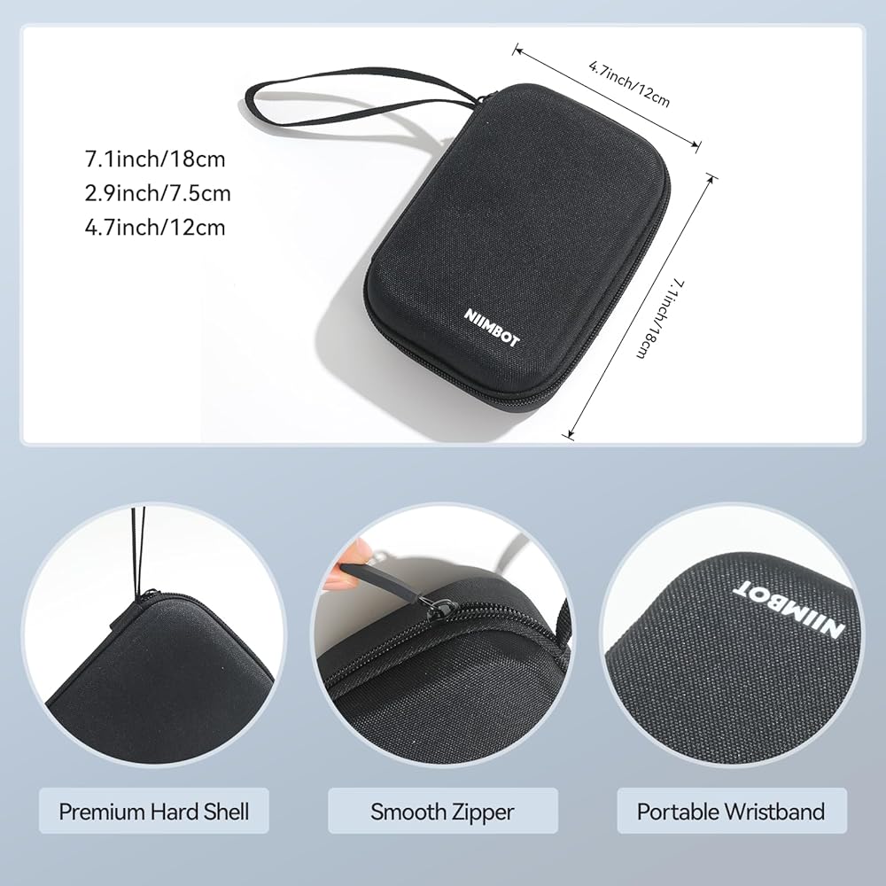 حقيبة صانع الملصقات NIIMBOT - سحاب ناعم ولكن قوي لسهولة الفتح والإغلاق، جيب شبكي إضافي يسمح لك بتخزين 6 أشرطة ملصقات إضافية وكابل USB، تصميم تخزين هرمي معقول يحافظ على طابعة الملصقات الخاصة بك منظمة بشكل جيد وآمنة.