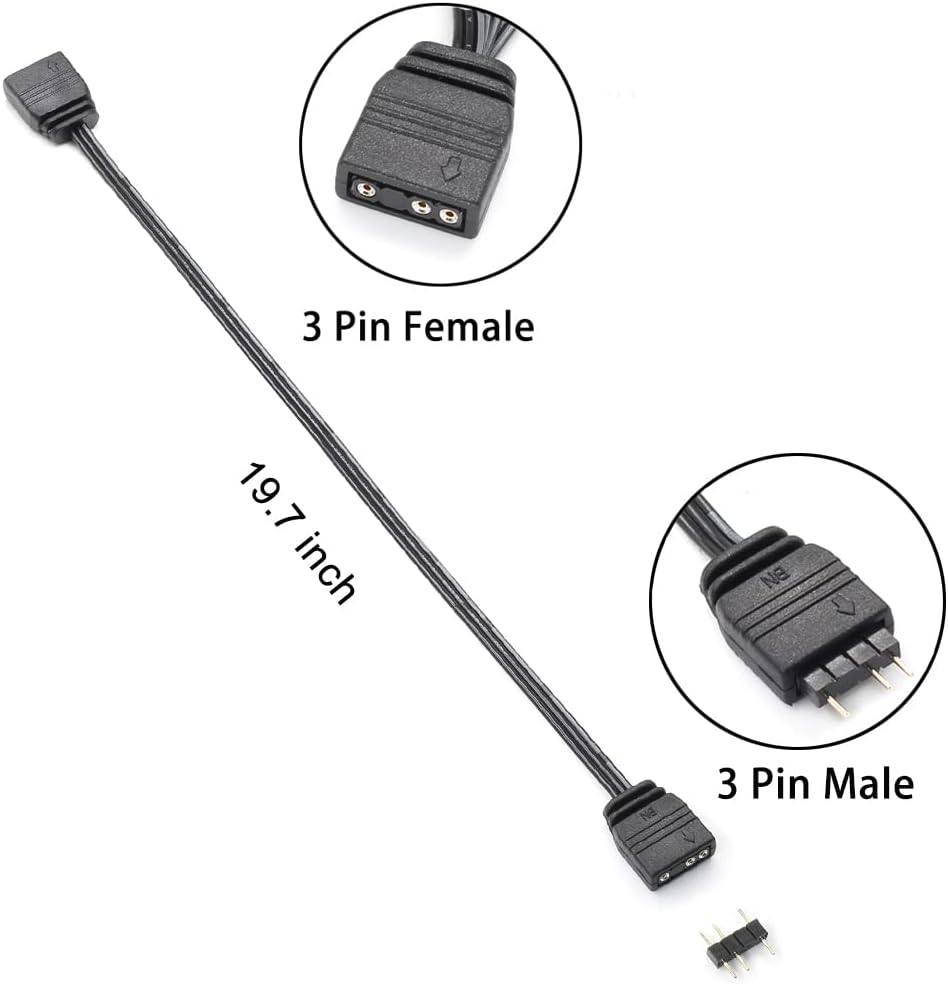يسمح استخدام كابل مقسم ARGB هذا بتمديد وتوصيل مروحة ARGB القابلة للتحكم أو سلسلة ARGB LED من خلال لوحة أم واحدة + رأس ARGB 5V 3 pin.