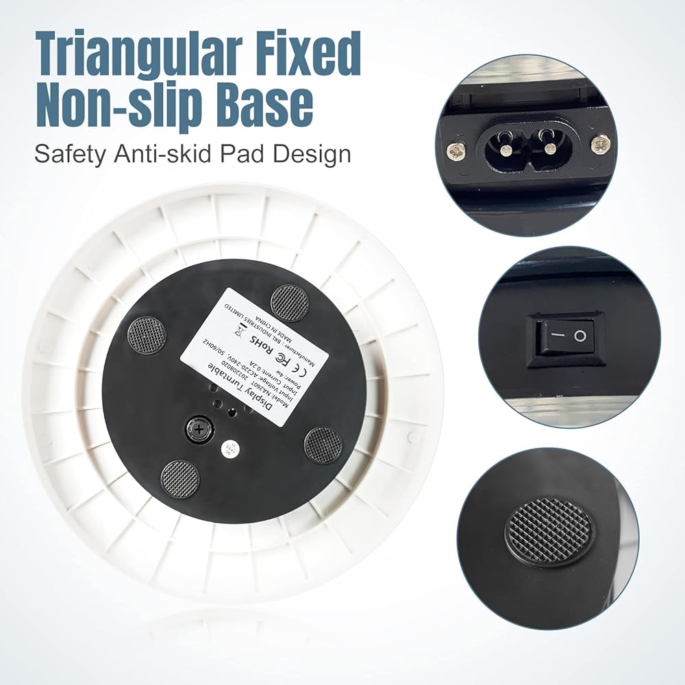 Anti-Slip Design - The turntable has four anti-slip pads on the bottom to ensure it stays securely in place during rotation. This design prevents accidents and ensures safe operation.