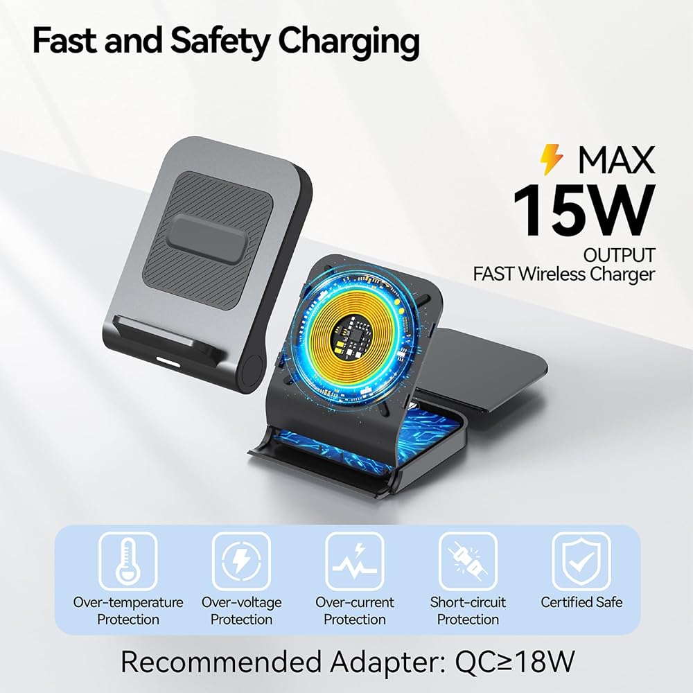 【شحن سريع مع الحماية】يتمتع الشاحن اللاسلكي z flip 5 بقدرة شحن تصل إلى 15 واط كحد أقصى. بالإضافة إلى الحماية من الشحن الزائد والتيار الزائد والجهد الزائد، فإن تجربة الشحن الخاصة بك ليست سريعة فحسب، بل آمنة أيضًا. يعمل شاحن samsung galaxy z flip 5 على تبسيط العملية، مما يلغي الحاجة إلى التوصيل والفصل المتكرر. توفير الوقت الثمين (نوصي باستخدام محول QC 18 واط أو أعلى للحصول على أفضل النتائج)