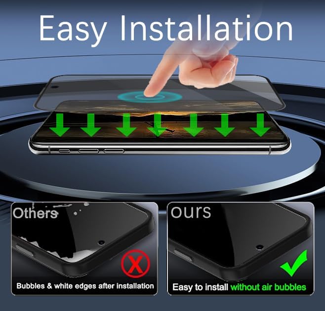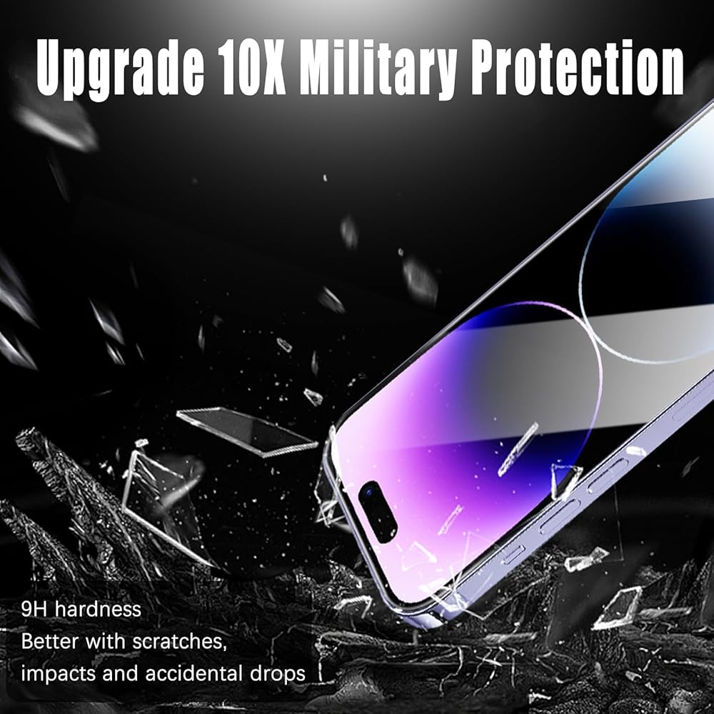 • سهولة التركيب: يستخدم واقي الشاشة الزجاجي للخصوصية iPhone 15/iPhone 15 Pro تقنية امتصاص النانو الكهروستاتيكية. ما عليك سوى محاذاة الغشاء الزجاجي مع الشاشة، وسوف يلتصق تلقائيًا دون مشاكل الحواف البيضاء أو الفقاعات. لا تتردد في التواصل معنا إذا كانت لديك أية أسئلة – فنحن هنا لمساعدتك.