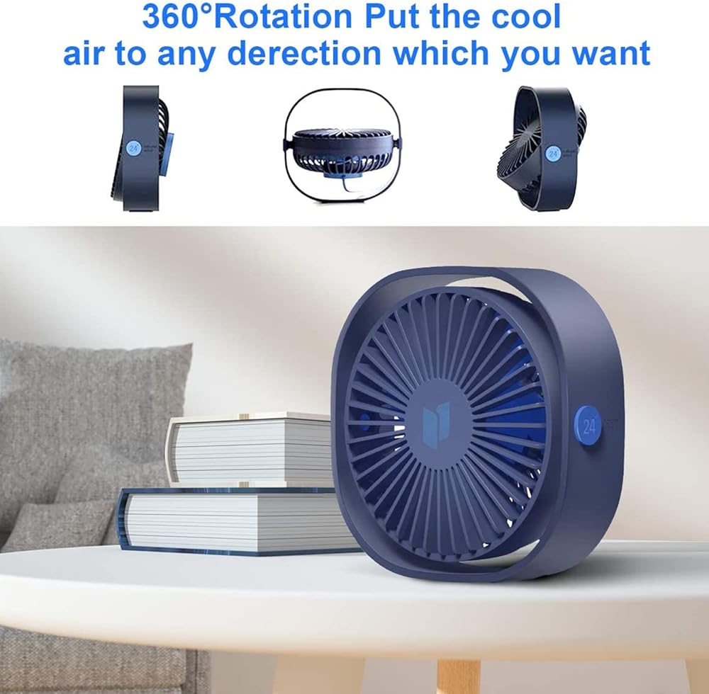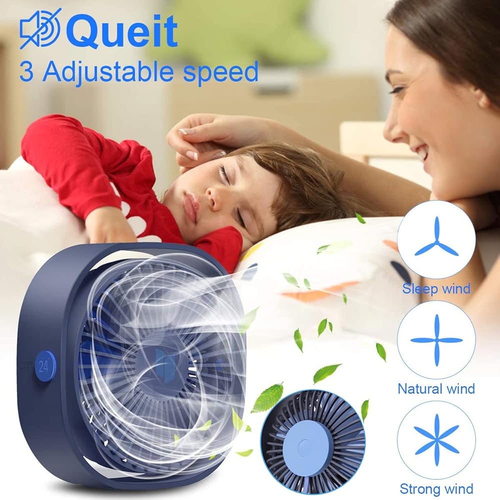 مروحة مكتب QIJIAYI صغيرة USB، 3 سرعات قابلة للتعديل ومروحة تبريد طاولة سطح المكتب المحمولة تعمل بواسطة USB، رياح قوية، تشغيل هادئ، للمكتب، السيارة، المعسكر، الكمبيوتر المحمول، السفر في الهواء الطلق (أزرق)