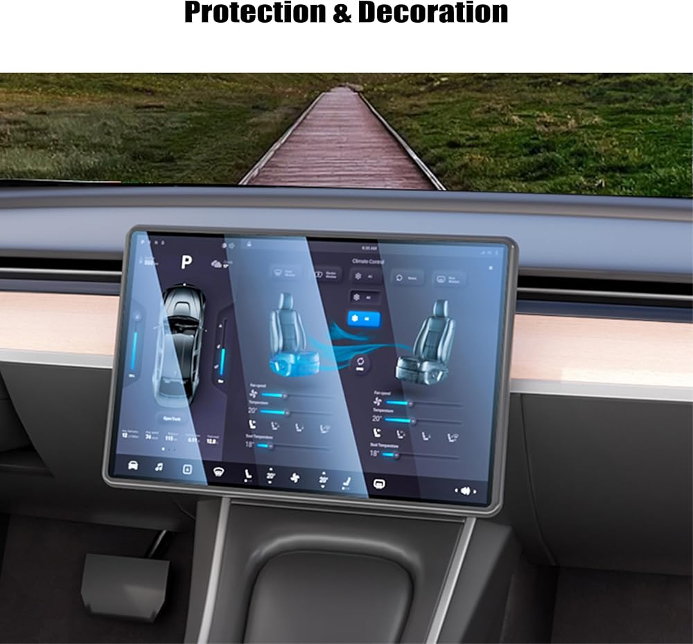 حماية كاملة للشاشة: مصمم حصريًا لطراز Tesla 3 2017-2023 وTesla Model Y 2019-2023 واقي إطار شاشة من السيليكون الناعم من مادة TPU، يحمي شاشة التحكم المركزية الكاملة.
