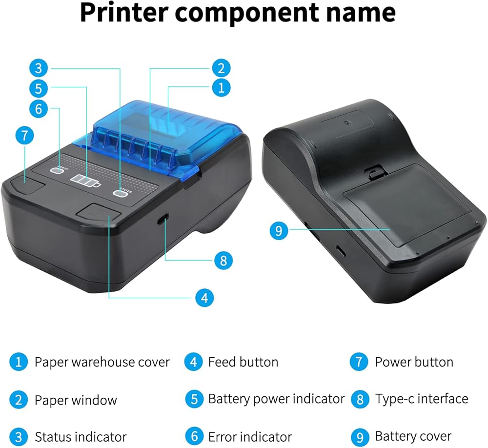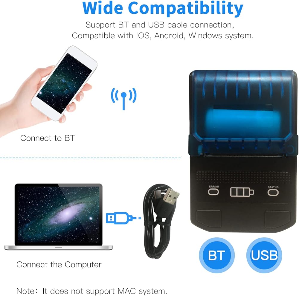 🧡 طابعة ملصقات حرارية محمولة مقاس 58 مم، توافق قوي، تدعم اتصال كابل BT أو USB، متوافقة مع أنظمة iOS وAndroid وLinux وWindows. يرجى تنزيل التطبيق أو برنامج التشغيل النسبي على أجهزتك.