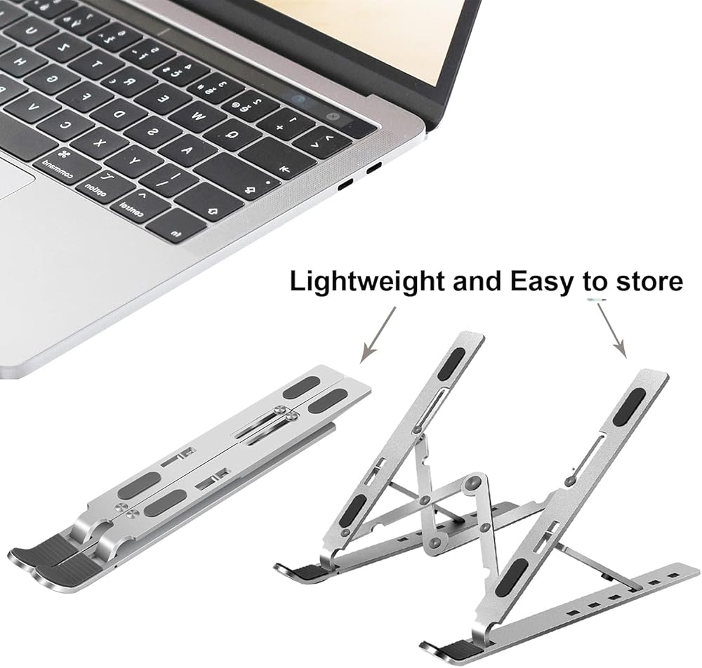 [حامل لابتوب محمول]: يزن الحامل القابل للطي 10.5 اونصة فقط، سهل الحمل، ويمكن وضعه مع اللاب توب الخاص بك في الحقيبة بسهولة