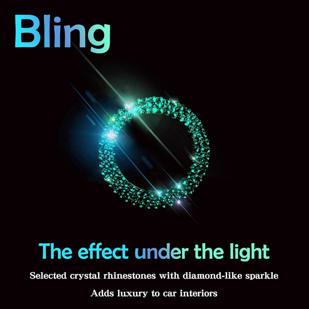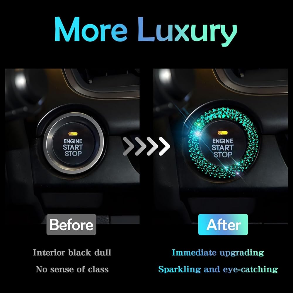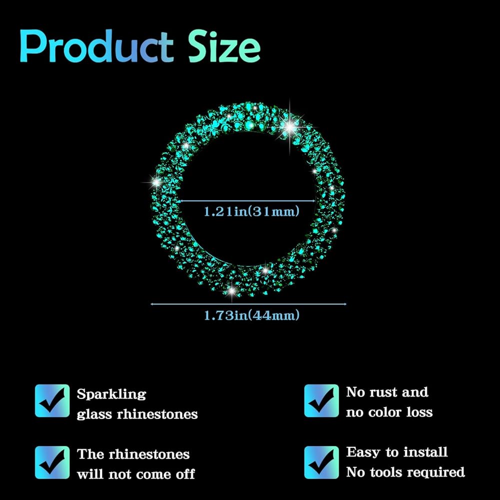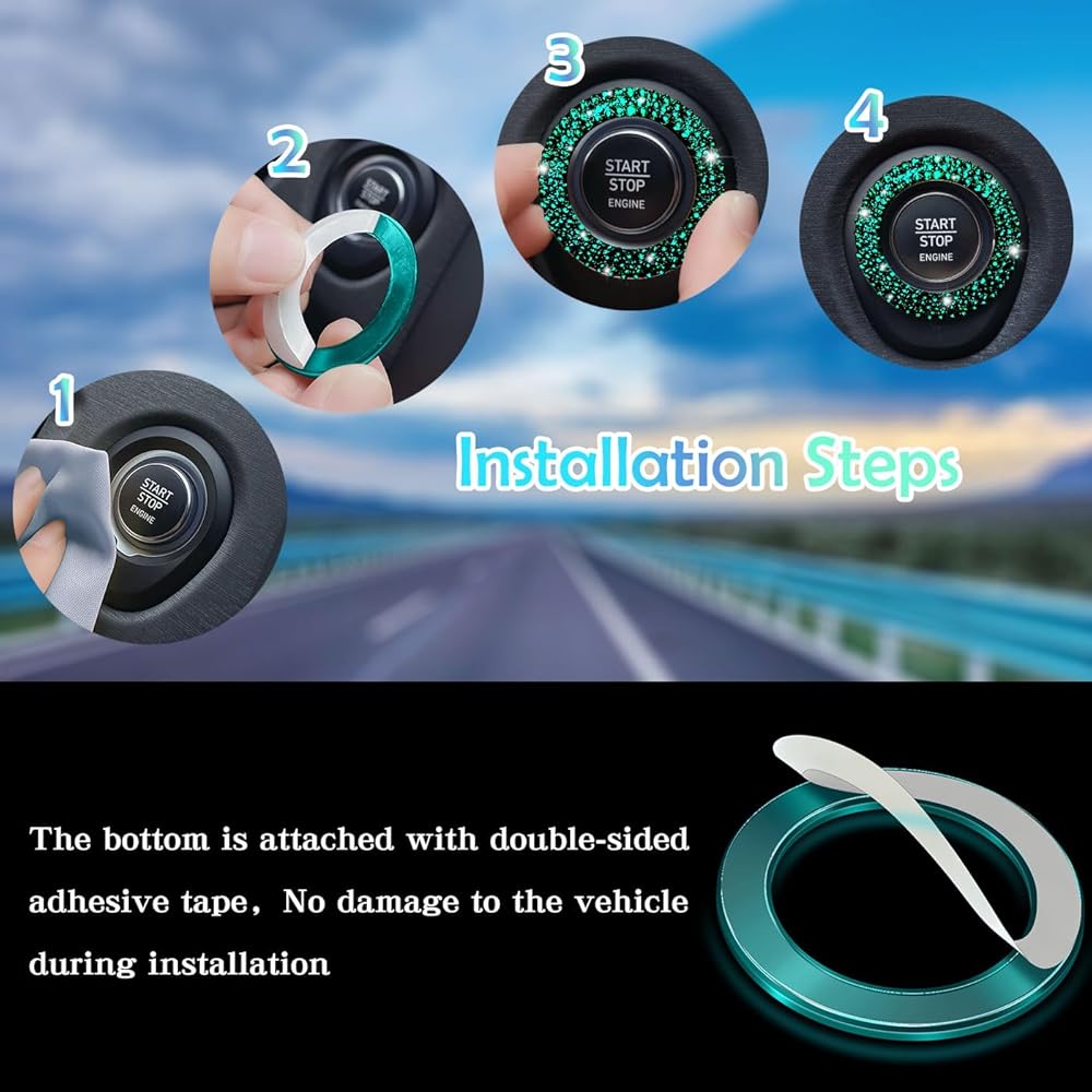 كريستال حجر الراين بلينغ سيارة دفع زر البداية غطاء / ملصق محرك بدء إيقاف الديكور حلقة بلينغ اكسسوارات السيارات للنساء مفتاح الإشعال ومقبض بلينغ حلقة أحجار الراين الخضراء