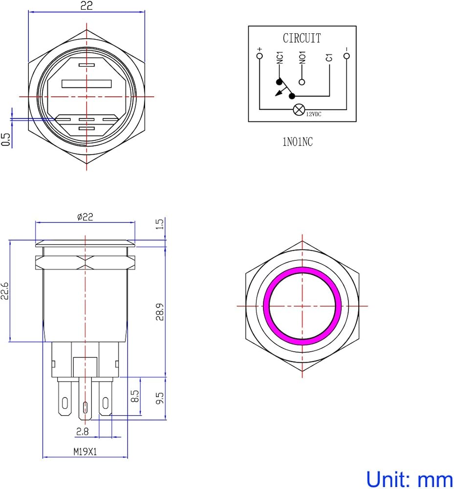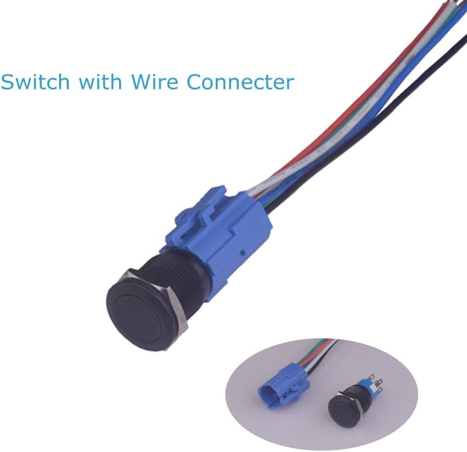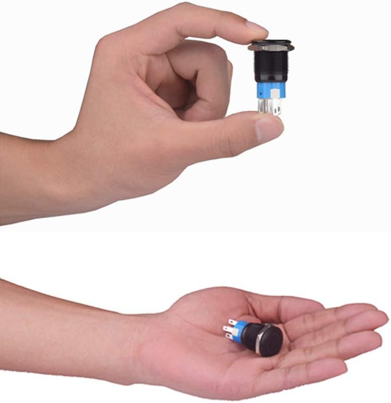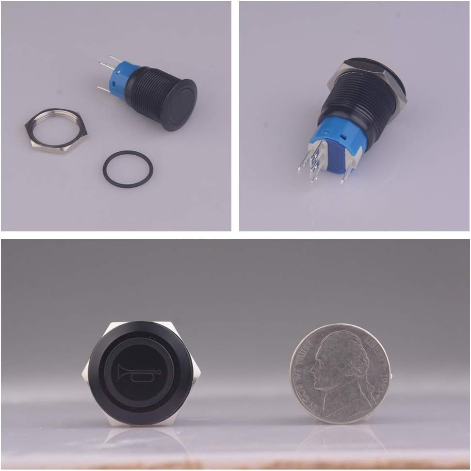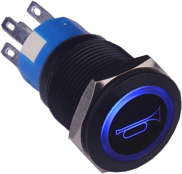 Taien لحظة ضغط على زر التبديل رمز القرن 19 مم 3/4 بوصة 1NO1NC تشغيل/إيقاف غلاف معدني أسود مع ضوء LED 12 فولت للسيارة DIY (مكبر صوت أزرق)