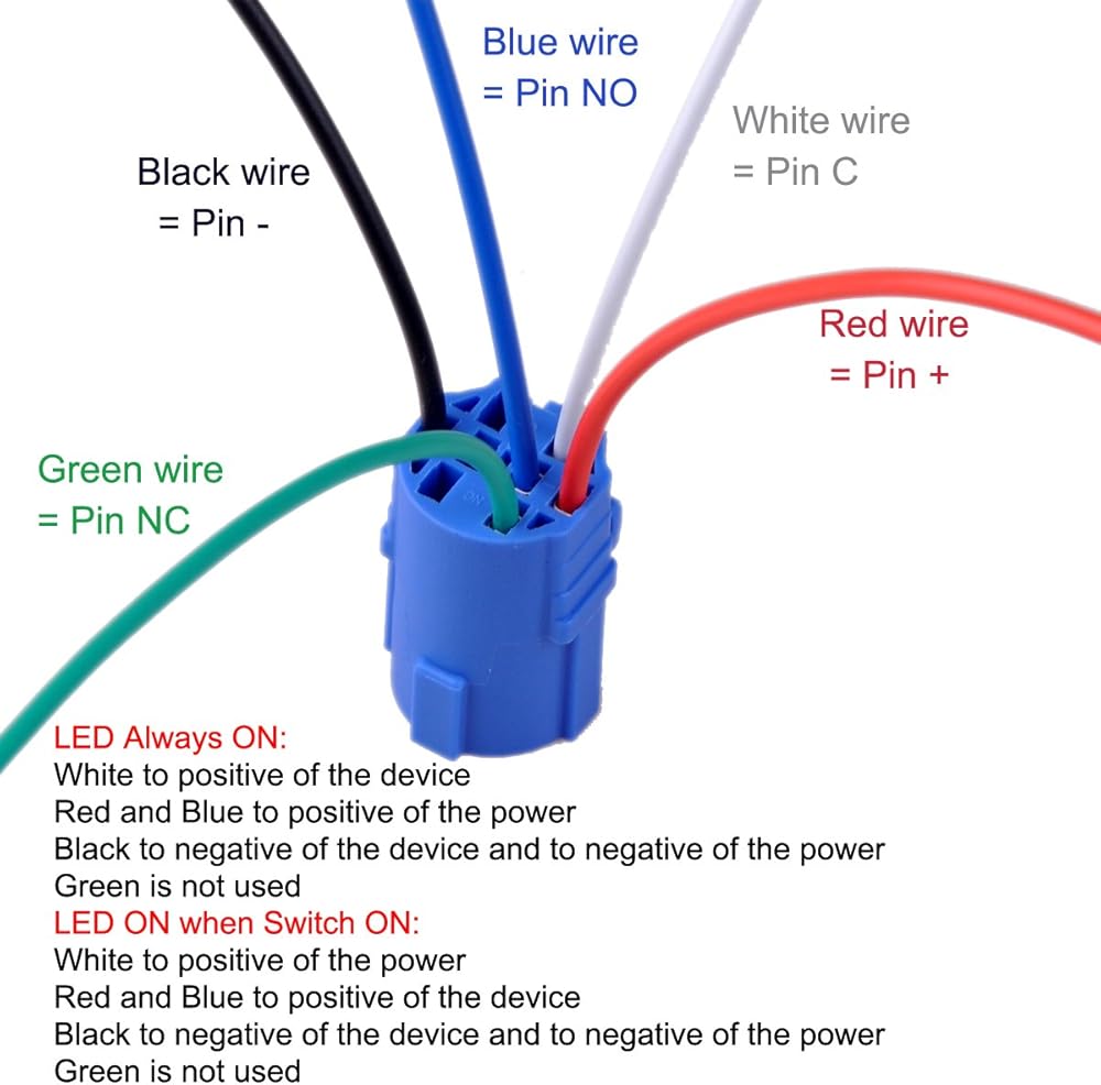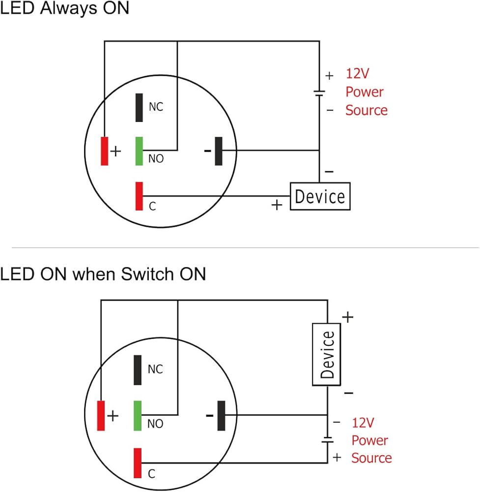- يتم فصل المفتاح ومؤشر LED، ويمكن تشغيل مؤشر LED طوال الوقت أو تشغيله فقط عندما يكون المفتاح قيد التشغيل، اعتمادًا على كيفية توصيله