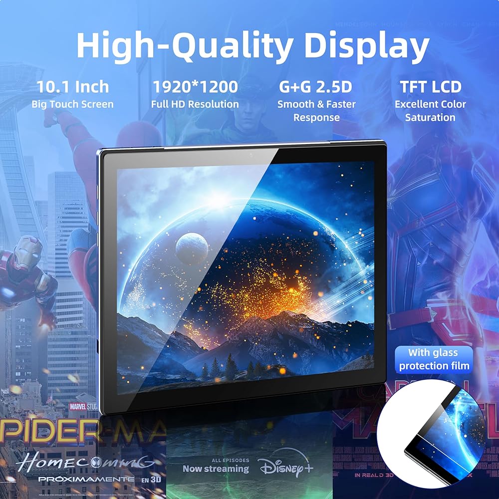 ❤[جهاز لوحي للألعاب عالي الأداء بدقة 1080 بكسل] يتم تشغيل الجهاز اللوحي بواسطة وحدة المعالجة المركزية ثماني النواة المطورة ذاتيًا من MediaTek بسرعة تصل إلى 2.0 جيجا هرتز لتشغيل مرن وسرعات معالجة أسرع. يتميز الجهاز اللوحي بشاشة G+G مقاس 10.1 بوصة ذات 10 نقاط بدقة عالية تبلغ 1920 × 1200 IPS، ودقة Full HD لتجربة مشاهدة أكثر وضوحًا، واستجابة أسرع لشاشة اللمس. مع بطارية ضخمة بسعة 7000 مللي أمبير في الساعة، فهي مثالية لمشاهدة مقاطع الفيديو والأفلام الرائجة.