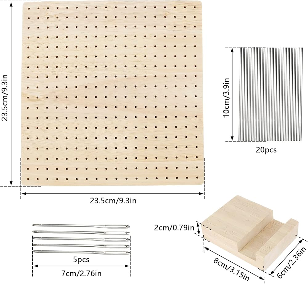 • 【لوح حجب دقيق للحياكة】يتميز لوح الحياكة الذي تصنعه بنفسك بـ 324 فتحة متباعدة بالتساوي كل منها 0.5 انش، مما يضمن لك ترتيب مشاريعك اليدوية بسهولة وإكمالها بدقة. لوح الحجب الخشبي هو مصدر خياطة عملي للكروشيه ومربعات الجدة ومشاريع الخياطة والحياكة.
