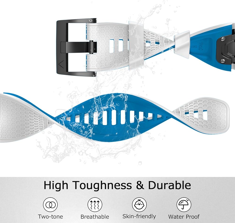 【أساور ناعمة صديقة للبيئة】سوار الساعة الرياضية هذا مصنوع من السيليكون البيئي الناعم عالي الجودة، بدون رائحة غريبة وغير ضارة، لا توجد حافة إضافية لإيذاء يديك، سوار السيليكون مقاس 26 مم لساعتك مع مشبك آمن سيحميها من الانزلاق، يناسب بشكل رائع وأكثر أمانًا عند ركوب الدراجة أو ممارسة التمارين.