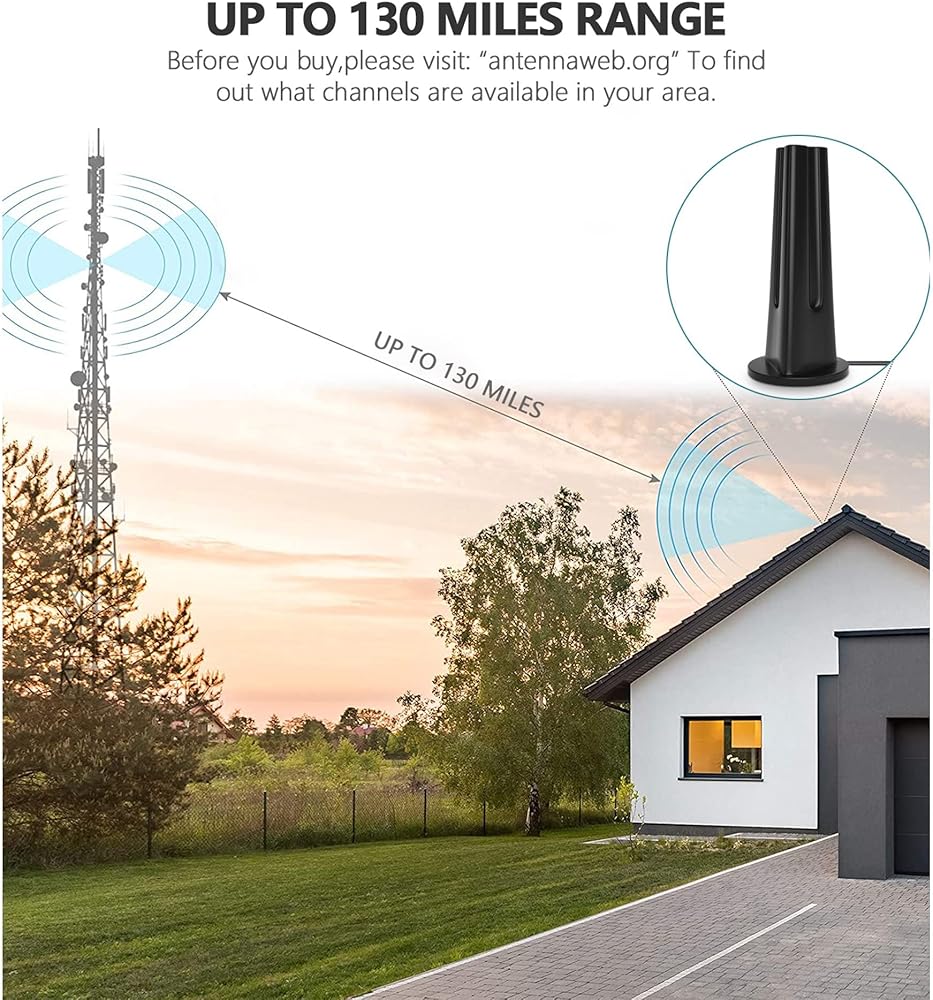 رقاقة اي سي ذكية مدمجة وتقنية فلتر شفاف كريستال، هوائي التلفزيون الذكي هذا قادر على التقاط الإشارات في نطاق 130 ميل دون عناء.