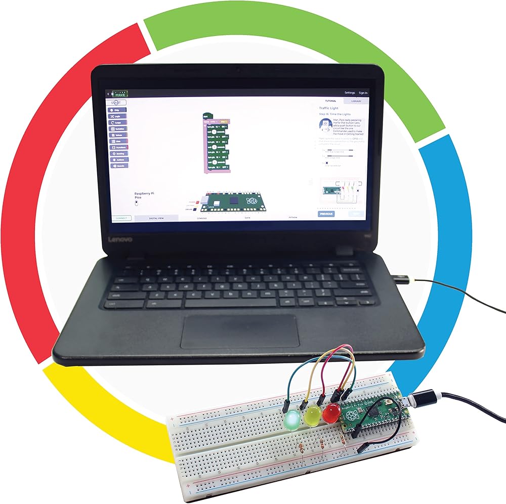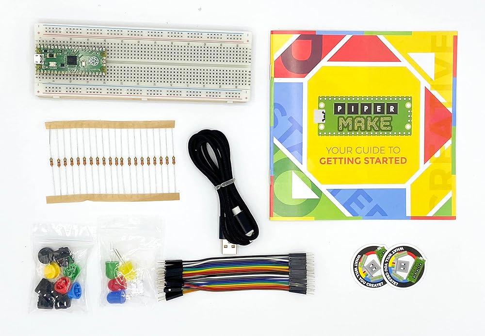 مجموعة بايبر Make Starter Kit هي المجموعة الأساسية لجميع منتجات بايبر Make، بما في ذلك وحدة التحكم الدقيقة راسبيري باي التي تعمل كدماغ لجميع المهام التي ستجدها على منصة الترميز المجانية التي يمكنك السحب والإفلات make.playpiper.com. تم تصميم بايبر Make للعمل مع أجهزة كروم بوك أو أي كمبيوتر آخر يستخدم متصفح كروم - فقط قم بتوصيله بجهاز الكمبيوتر الخاص بك باستخدام كابل micro USB إلى USB-A المرفق. مع مجموعة ستارتر اكسبيديشن، ستتمكن من الوصول إلى 10 دروس ترميز ذاتية التوجيه مجانية على بايبر Make - بدءًا من وميض مصباح LED إلى صنع الموسيقى باستخدام المقاومات. بينما تساعد بيبربوت وبيب على استكشاف المريخ في قصتنا، ستتعلم التفكير الحسابي والدوائر الأساسية وغير ذلك الكثير. تعرف على المزيد حول ما يمكنك القيام به مع مجموعة اكسبيديشن للمبتدئين من واي فاي مع دليل البدء السريع. تتضمن مجموعة ميك ميك ستارتر وحدة التحكم الدقيقة راسبيري باي بيكو ومعدات اللوح الأساسية بما في ذلك: - لوحة توصيل ذات 830 فتحة - أسلاك توصيل (M2M) - مقاومات (10) - أزرار لمس - مصابيح LED - كيبل USB إلى USB-A بطول 1 متر - قص بالليزر، قاعدة خشبية محفورة بالليزر - تصنع ملصقات مع مجموعة المبتدئين المتنوعة، يمكنك أيضًا الحصول على إضافات مثل وحدة التحكم ووكر وروفر البيت الشمسي وأكثر من ذلك! مجموعة المبتدئين مطلوبة كقاعدة لهذه الإضافات. بالنسبة للمعلمين، تتضمن منصة وريل ميك عبر الإنترنت أدوات لتسهيل التدريس باستخدام ميك. الموارد مثل أدلة المعلمين ومجموعة كاملة من أدوات التعاون من جوجل بما في ذلك زر مشاركة الفصل الدراسي وتسجيل الدخول الفردي من جوجل (SSO) ووظائف حفظ في جوجل درايف مجانية ومتاحة على make.playpiper.com. يوصى بها للأعمار من 8 سنوات فأكثر.
