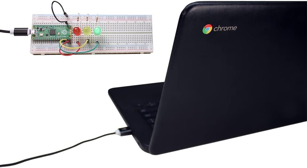 بايبر تم تصميم ميك للعمل مع أجهزة كروم بوك أو أي كمبيوتر آخر باستخدام متصفح كروم - فقط قم بتوصيله بجهاز الكمبيوتر الخاص بك باستخدام كابل مايكرو يو اس بي إلى USB-A المرفق.