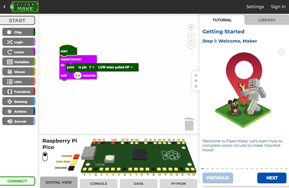 مجموعة بايبر Make Starter Kit هي المجموعة الأساسية لجميع منتجات بايبر Make، بما في ذلك وحدة التحكم الدقيقة راسبيري باي التي تعمل كدماغ لجميع المهام التي ستجدها على منصة ترميز بايبر Make.