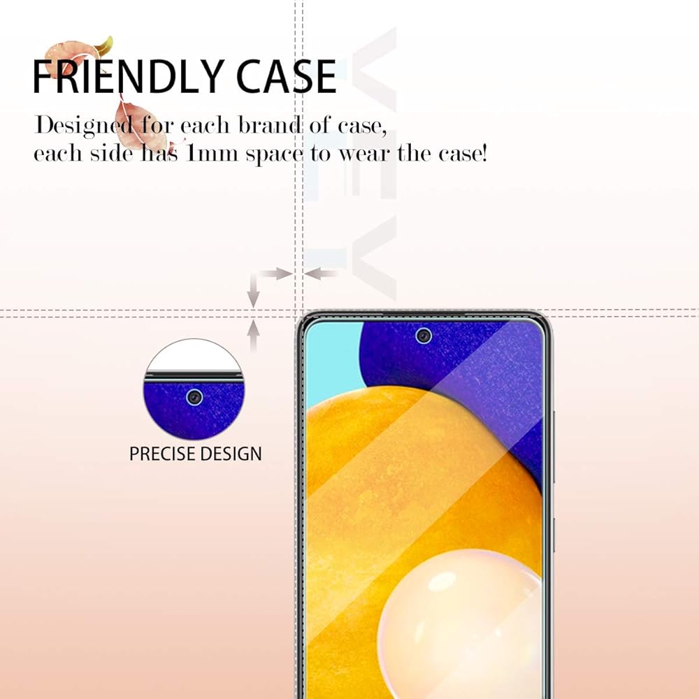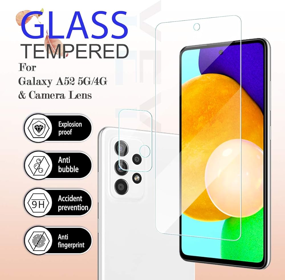 [تغطية كاملة للشاشة حماية مثالية]: من خلال الزجاج المقوى عالي الجودة بدرجة صلابة 9، أقوى بثلاث مرات من طبقة بي اي تي العادية. قوية بما يكفي لمنع الخدوش والخدوش والتمزق. يوفر حجم القطع الدقيق بالليزر أقصى قدر من الحماية لسطح شاشة اللمس بالكامل لهاتف جالاكسي A52. (ملاحظة: تم تصنيع واقيات الشاشة الخاصة بنا لتكون أصغر قليلاً من الشاشة الفعلية لجهازك. هذا لضمان أنه يمكن أن يتطابق مع معظم حافظات الهواتف.)