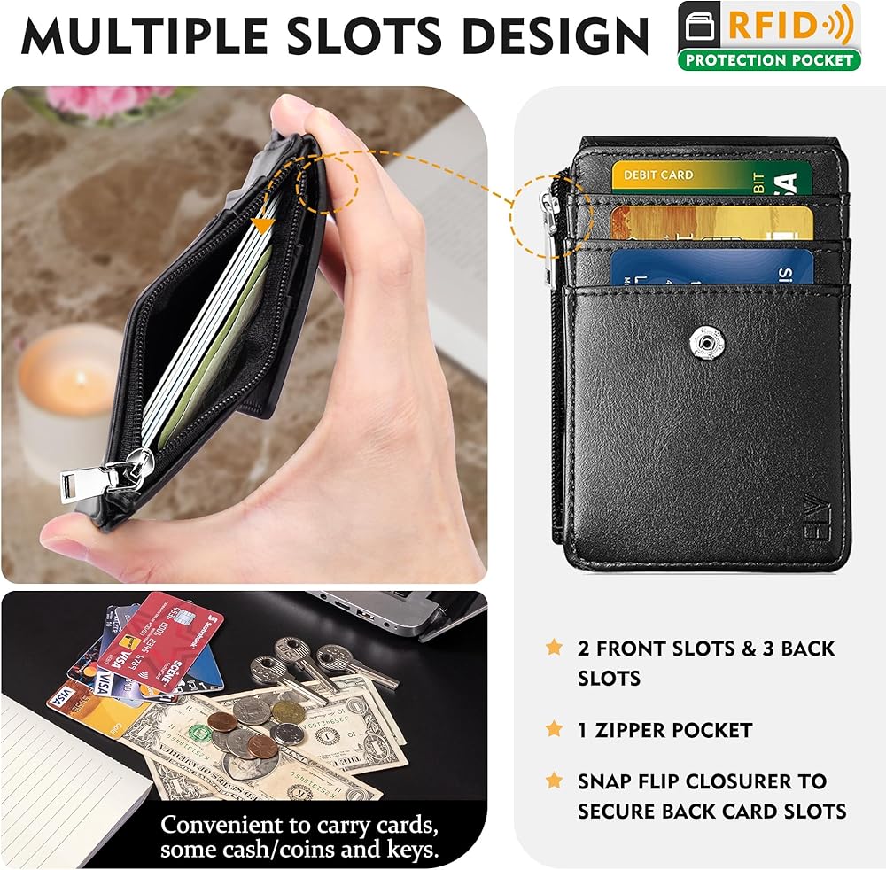 • BADGE HOLDER ID CARD WALLET STRUCTURE - With a total of 5 card slots, the front of this badge holder has a clear easy to scan ID card window and an open card slot with a pull tab for easy access. On the side of this ID card wallet is a RFID blocker pocket with a zipper. The opposite side has a built-in pen holder. The back of the card holder wallet has 3 debit and credit card sized slots protected by a sturdy leather covering which snaps tightly shut to prevent cards from falling out.