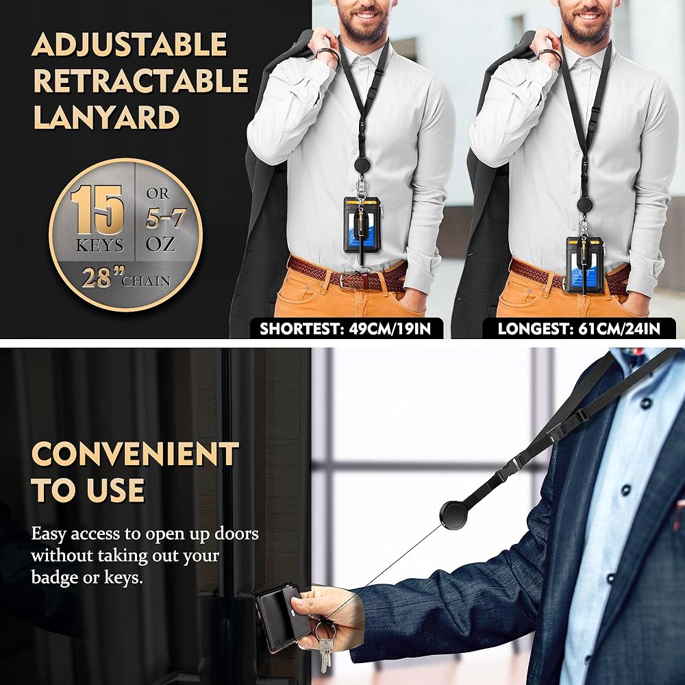 • RETRACTABLE BREAKAWAY LANYARD - Our neck lanyard is made from skin-friendly soft fabric. It is adjustable, retractable with safety breakaway clasp. The badge reel pull cord smoothly recoils with ease while holding up to 7OZ (195 grams) of weight.