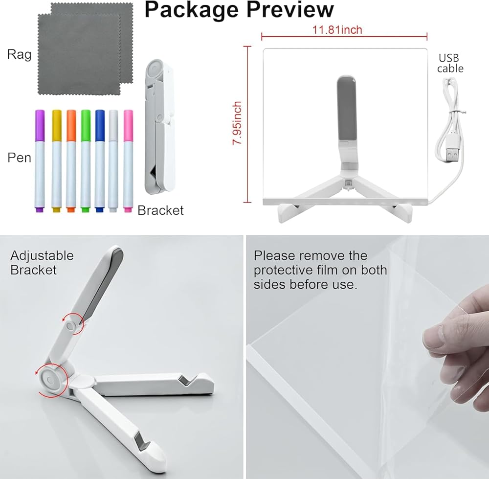[Striking Luminous Display]: Crafted from top-quality acrylic, this innovative board delivers a captivating luminous effect. Your messages, artwork, or notes are showcased brilliantly on the illuminated panel, ensuring they grab attention instantly.