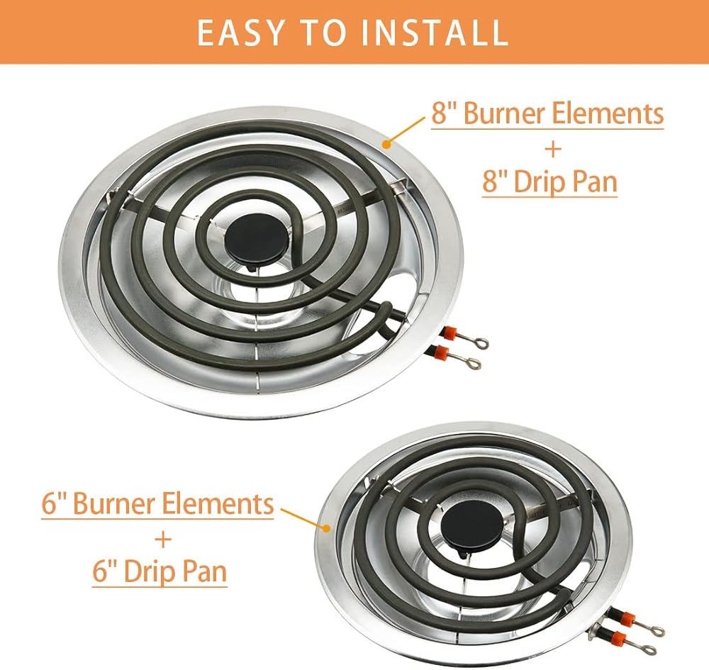 • ✅ استبدال مثالي: تتضمن العبوة 3 × أوعية صغيرة للتنقيط مقاس 6 بوصات W10196406، 1 × أوعية كبيرة للتنقيط مقاس 8 بوصات W10196405؛ 3 × WB30X254 6 بوصة - 1250 وات 240 فولت 3 دورات؛ 1 × WB30X253 8 بوصة - 2100 وات 240 فولت 4 دورات. يبلغ قطر المقالي 6 بوصة 7.5 بوصة، ويبلغ قطر المقالي 8 بوصة 9.4 بوصة. لون فضي، باستخدام تقنيات طلاء صديقة للبيئة.