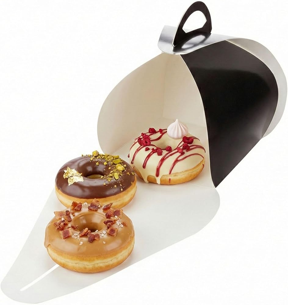مقبض مدمج مريح: تم تصميم صناديق الكعك الورقية هذه بمقبض مدمج لجعل مكافآتك سهلة الحمل مع ضمان النقل بدون فوضى. تناول الغداء بشكل مريح أثناء التنقل!