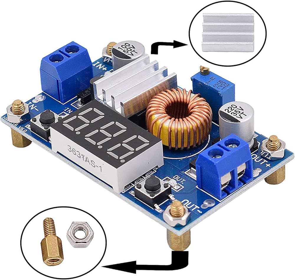 محول باك قابل للتعديل XL4015 وحدة تنحنح لأسفل 5A طاقة عالية 75W DC-DC مع شاشة LED (2 حزمة)