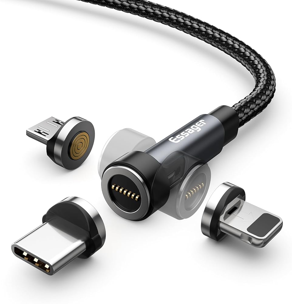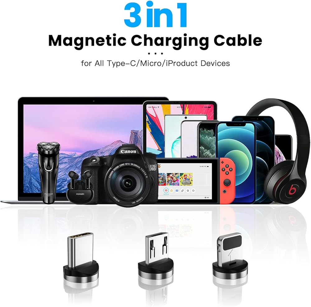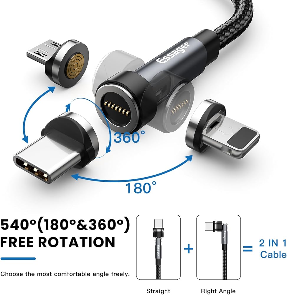 【عالمي ومتعدد الوظائف】مع التصميم المغناطيسي المبتكر 3 في 1، يتوافق كابل الشحن المغناطيسي ESSAGER مع مجموعة واسعة من الأجهزة. يأتي مزودًا بثلاثة أنواع مختلفة من الأطراف المغناطيسية: Micro USB، وType C، وiProduct. لم تعد بحاجة إلى حمل كابلات متعددة، مما يجعلها ملائمة للاستخدام في السيارات أو المكاتب أو أثناء السفر.