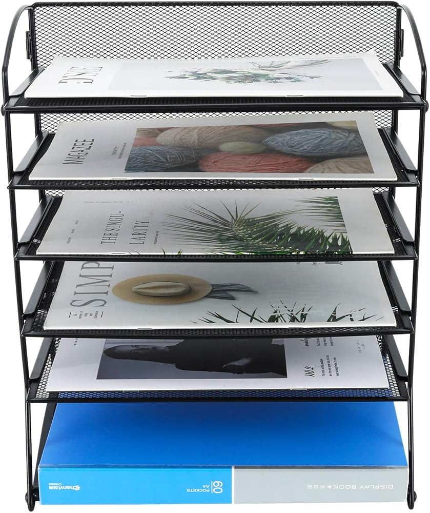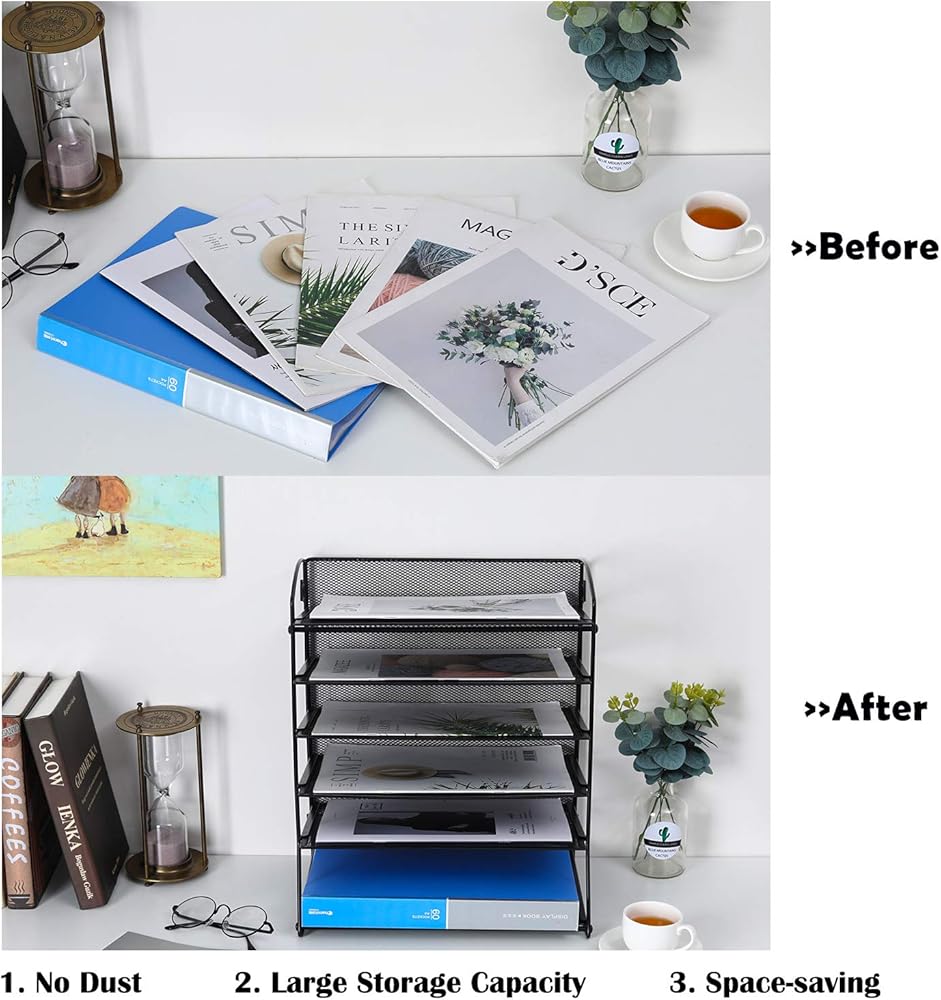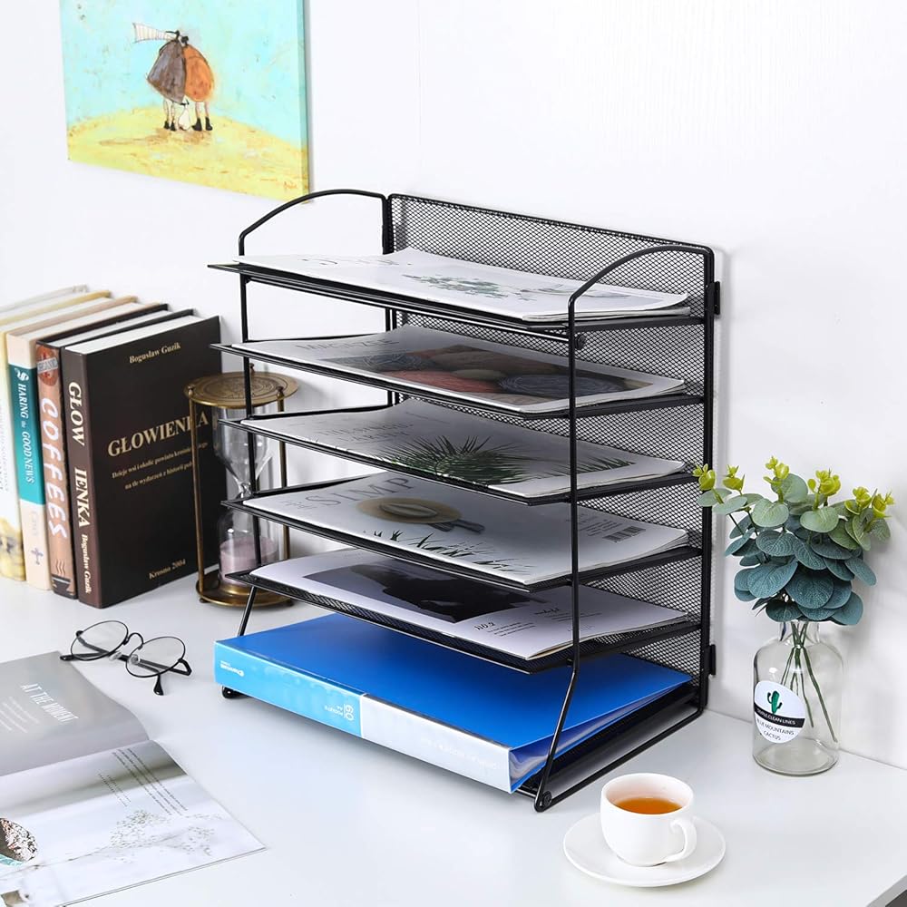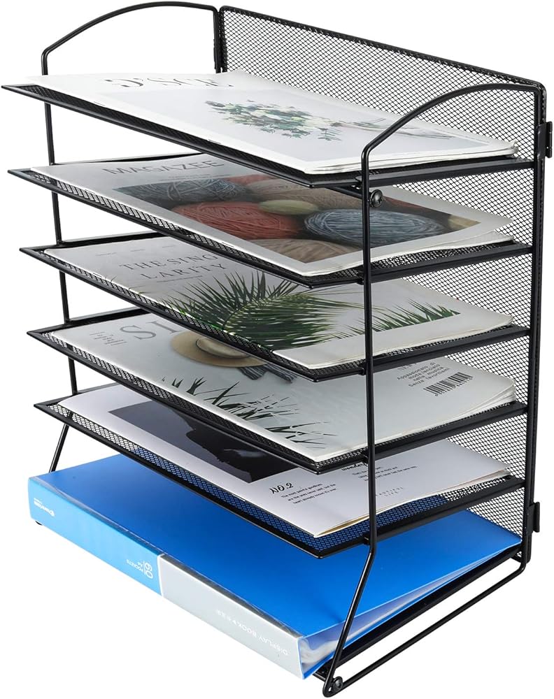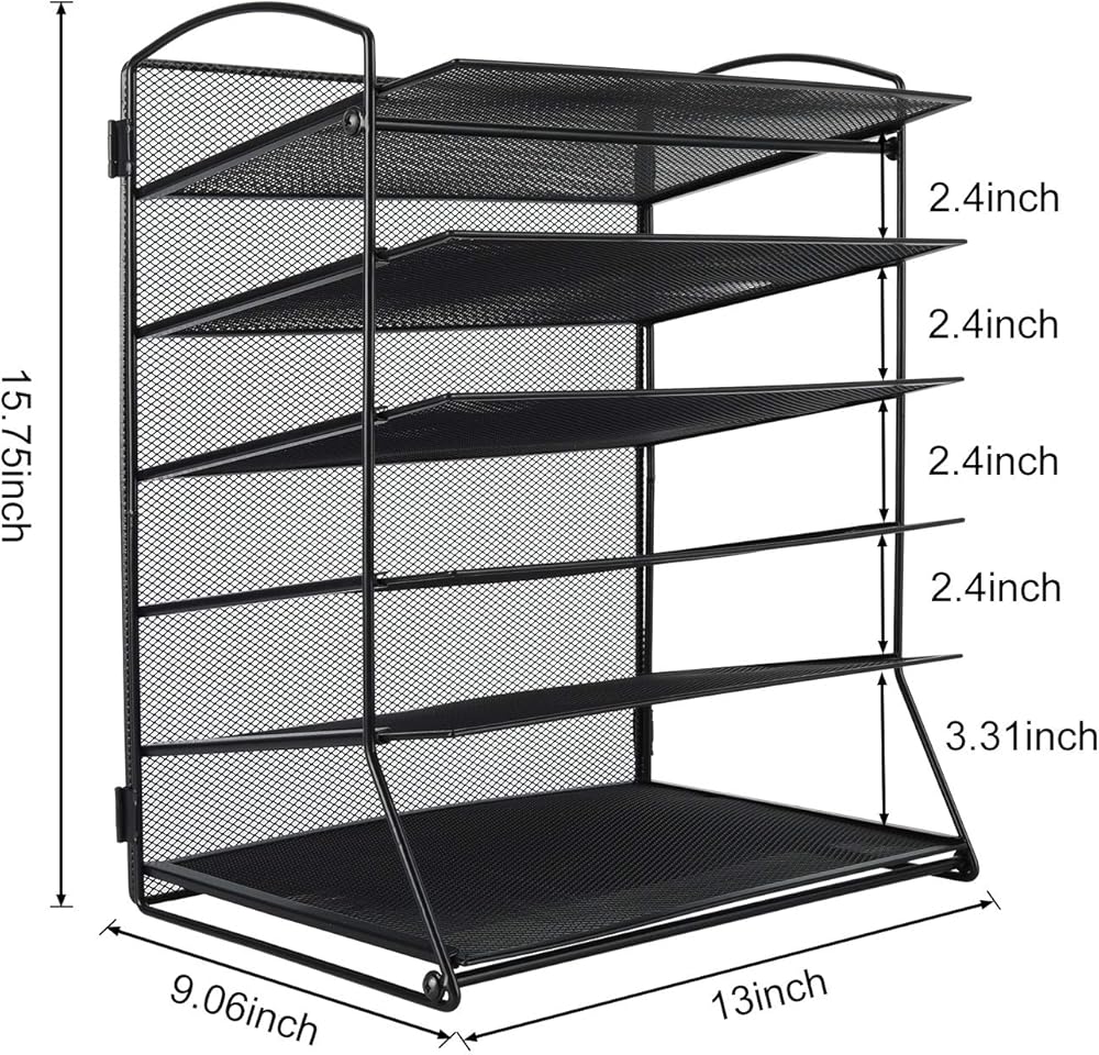 إجمالي 6 طبقات، أعلى 5 صواني مائلة رائعة لحمل الرسائل وورق ايه 4 والمستندات والمجلات ومجلدات الملفات. كما أن الصينية المسطحة السفلية رائعة لبعض دفاتر الملاحظات الصغيرة والآلة الحاسبة والدباسة والملاحظات اللاصقة وغيرها من الملحقات المكتبية.