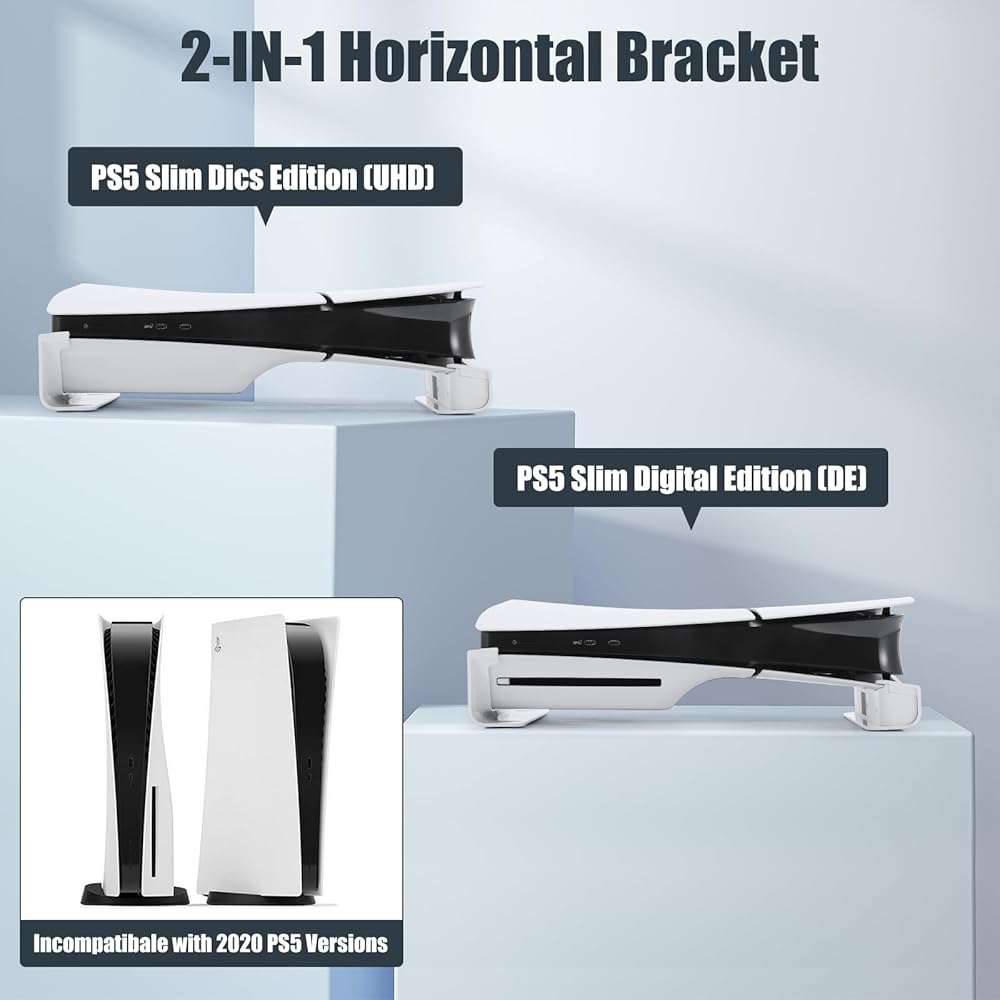 【Upgraded Horizontal Stand for PS5 Slim】This upgraded horizontal stand is designed for the 2023 NEW PlayStation 5 Slim disc and digital edition console. [ONLY FOR NEW PS5 SLIM CONSOLE 2023, NOT FOR OLDER]
