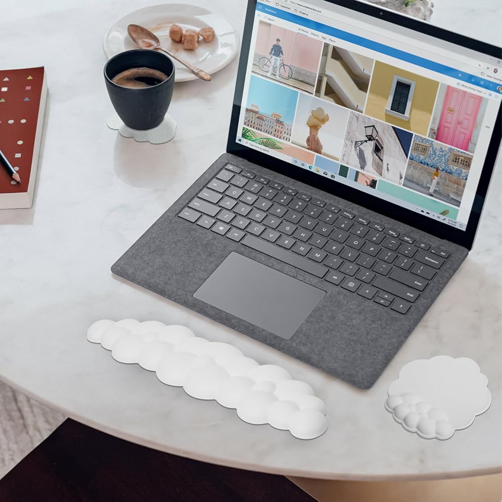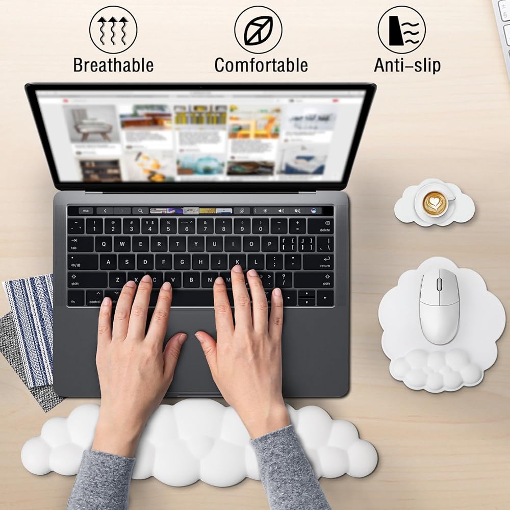 【Unique Shape】Included keyboard wrist, mouse rest and cup pad, and the cloud-shaped pad is very unique&good-looking and enhances the user's experience, designed for daily working or gaming.