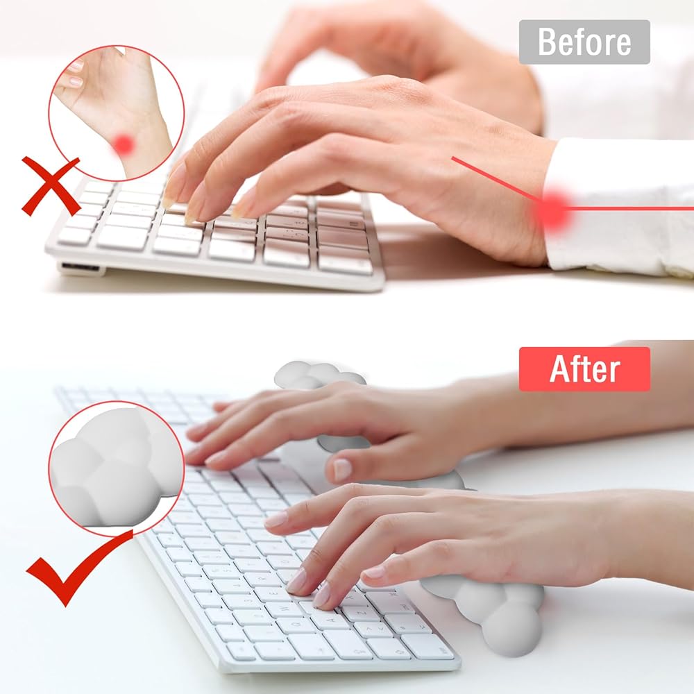 【Grips Desktop Firmly】Our keyboard wrist pad features a non-slip silicone base that holds it securely in place and prevents it from sliding or accidentally moving on your desk.