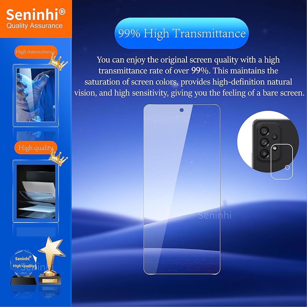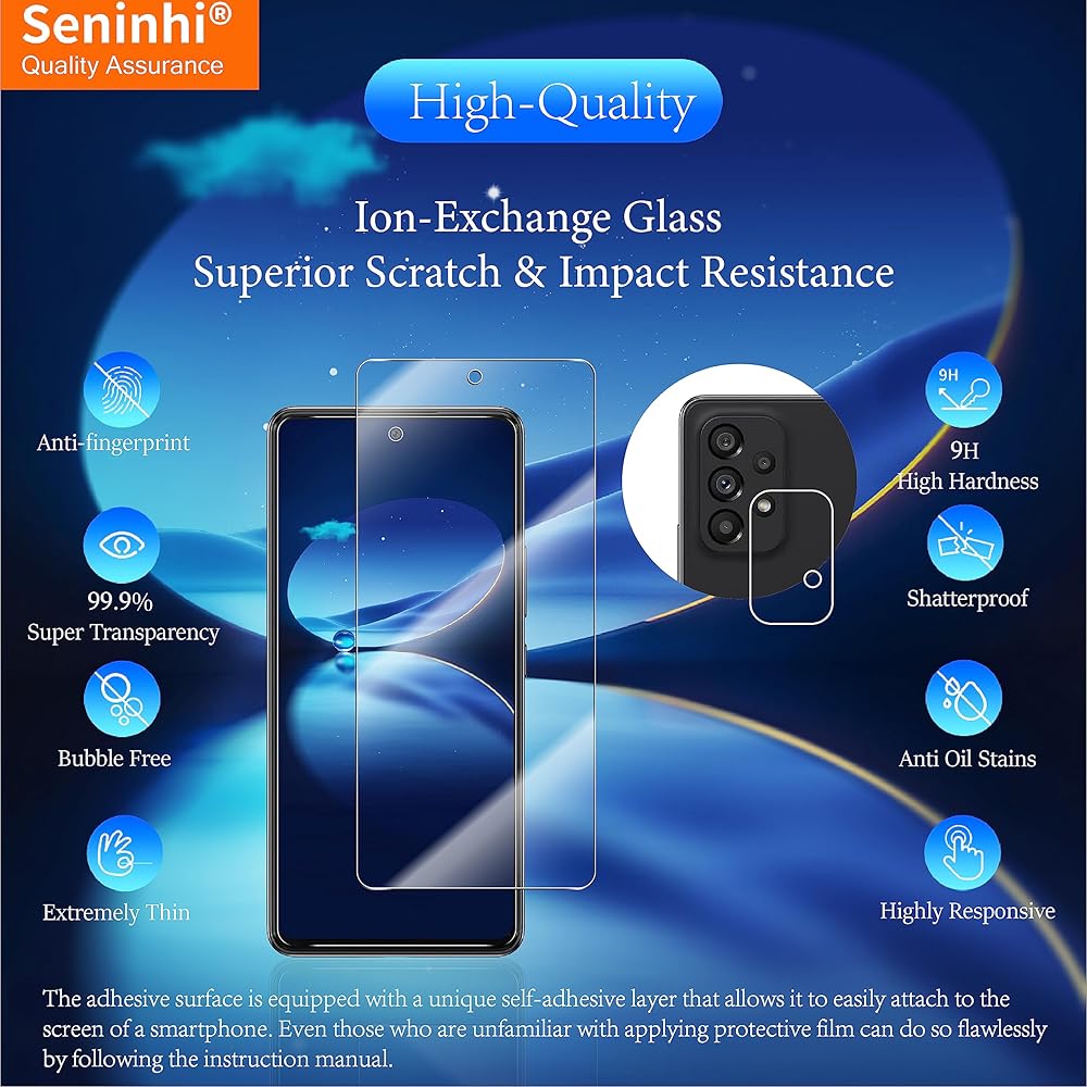 ✅[صلابة عالية الجودة لمدة 9 ساعات] يتميز واقي الشاشة Galaxy A53 5G بصلابة ممتازة تبلغ 9 ساعات حيث خضع لعملية تسخين عالية الحرارة لأكثر من 4.5 ساعات لضمان الجودة الفائقة.