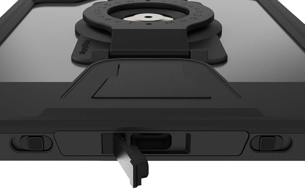 • تشمل الميزات: واقيات مدمجة للشاشة وعدسة الكاميرا، وأغطية المنافذ والأزرار