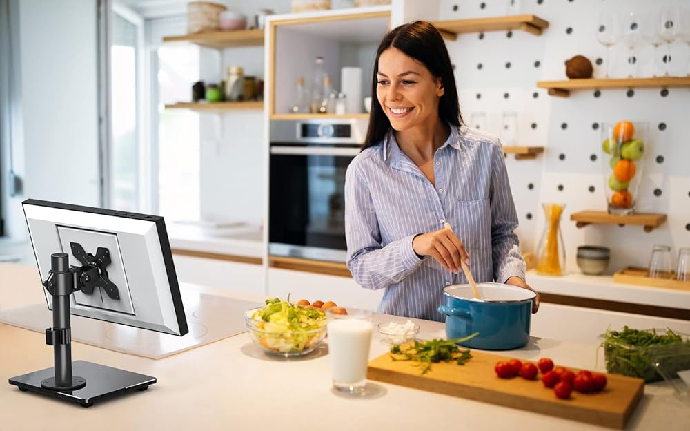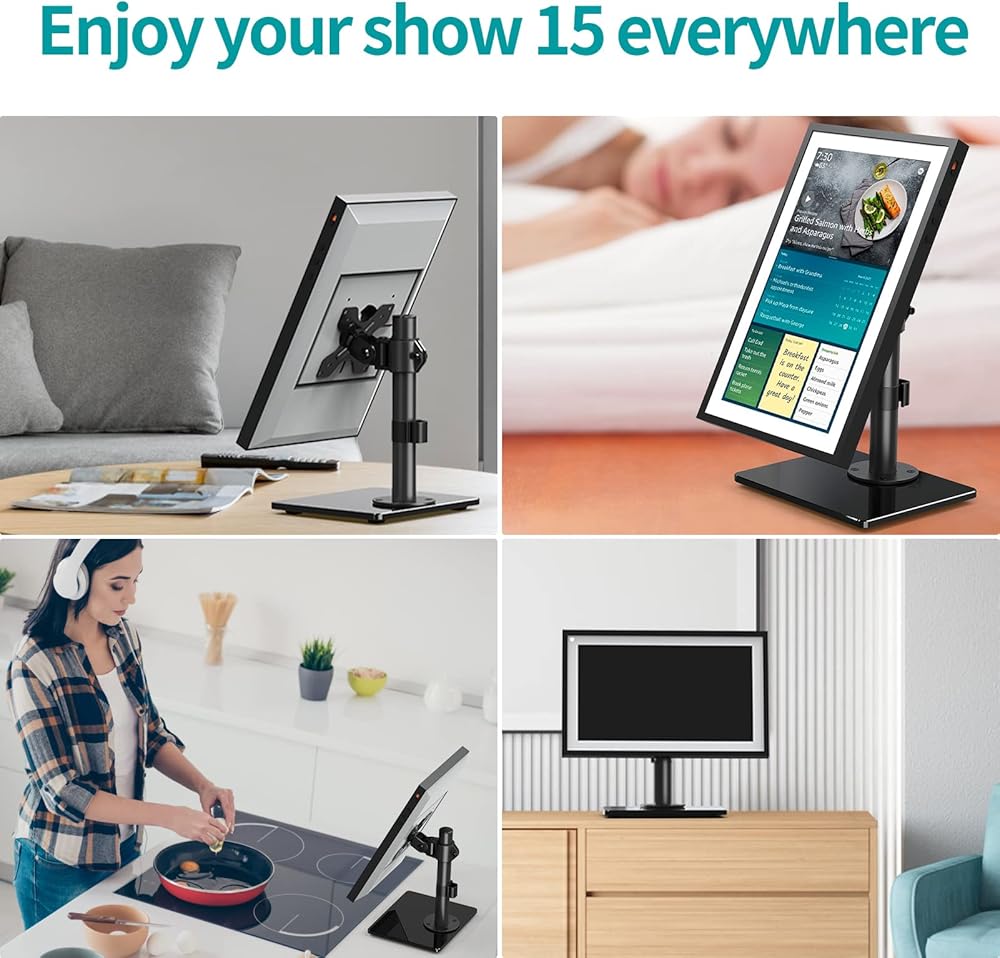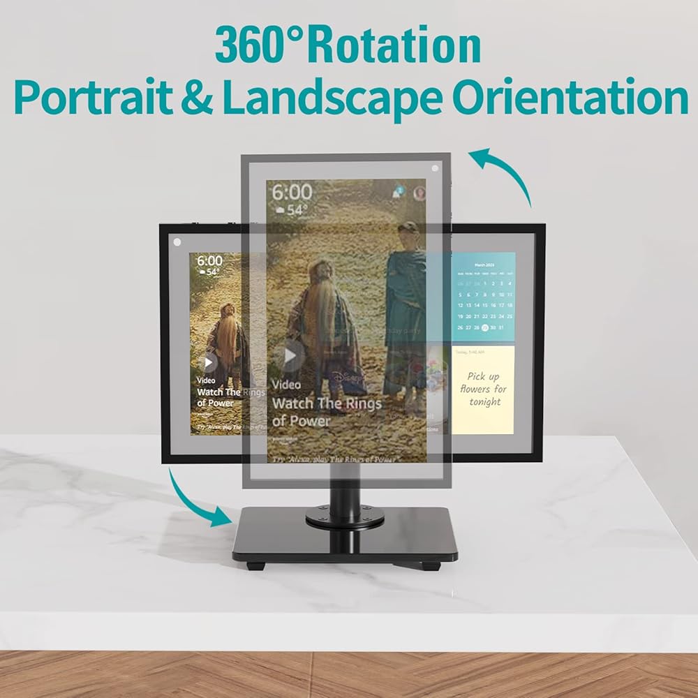سهل الاستخدام - تم تصميم حامل سطح المكتب هذا لجهاز ايكو شو 15. سواء كنت ترغب في استخدامه في المطبخ أو مكان العمل أو غرفة الطعام أو غرفة المعيشة، فإن هذا الحامل مثالي لك. والأفضل من ذلك، أنه أيضًا حامل مكتب قائم بذاته يدعم ايكو شو 15 دون الحاجة إلى حفر ثقوب أو استخدام أي مشابك دون إتلاف مكتبك أو جدرانك. نظرًا لأنه غير مثبت على سطح الطاولة أو الحائط، فإن الحامل سهل التحريك.
